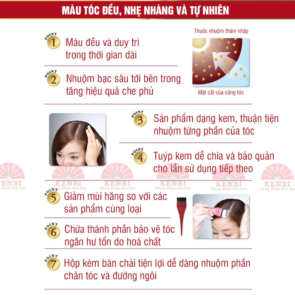 Nhuộm tóc phủ bạc BIGEN, kem nhuộm tóc thảo dược đủ 5 màu tự nhiên 3G/4G/5G/6G/7G hàng nội địa Nhật Bản an toàn cho tóc