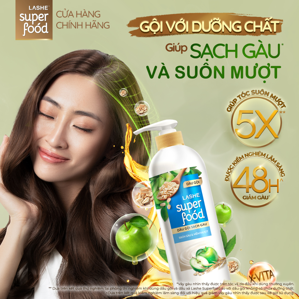 Dầu Gội LASHE SUPERFOOD Ngăn Gãy Rụng Tóc/Phục Hồi Hư Tổn /Sạch Gàu Giảm Rụng /Sạch Gàu Mềm Mượt 300G/ 640G/ 630G/ 1.1KG
