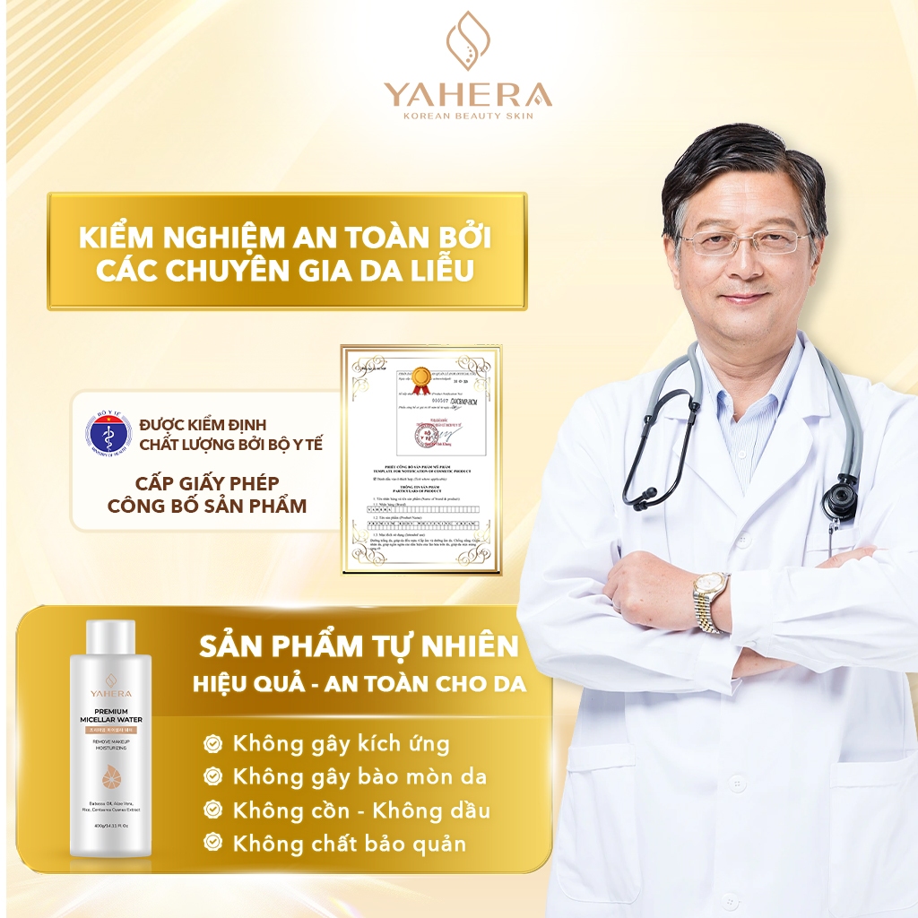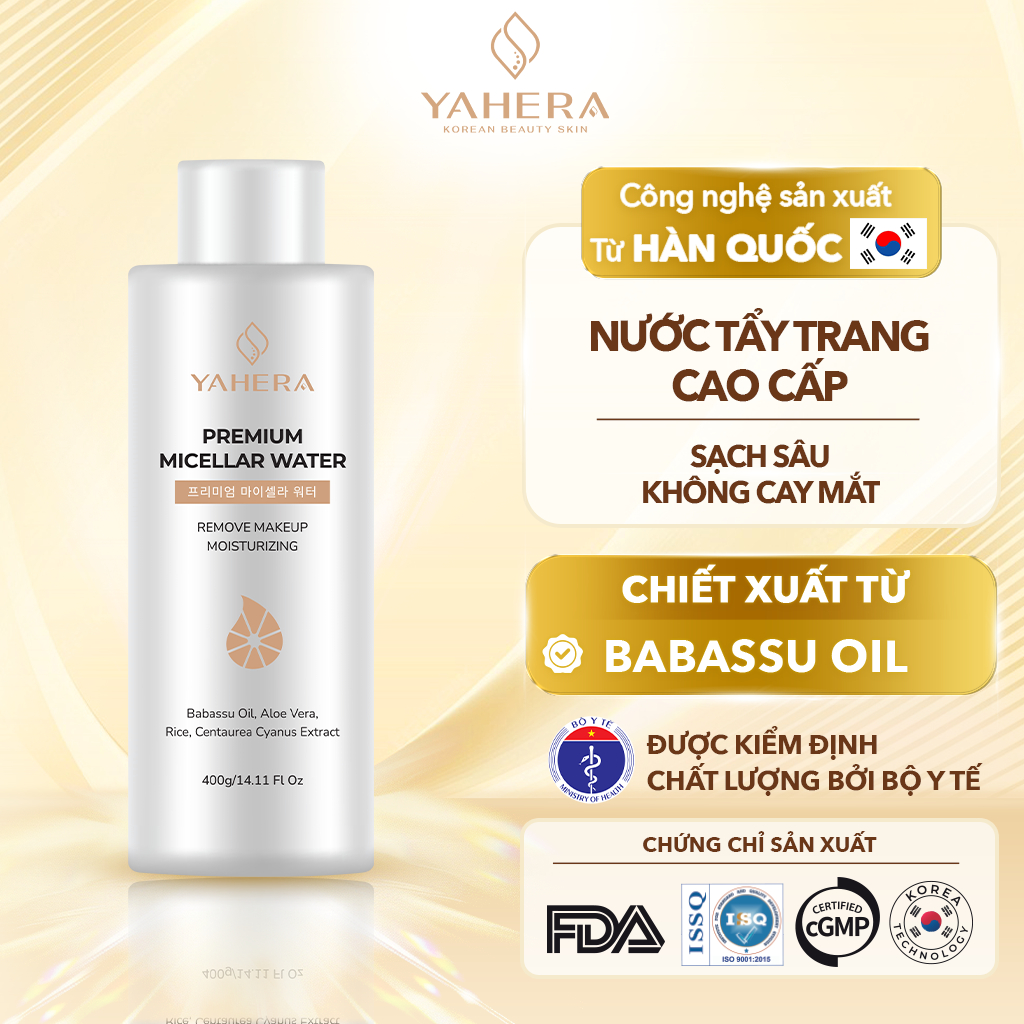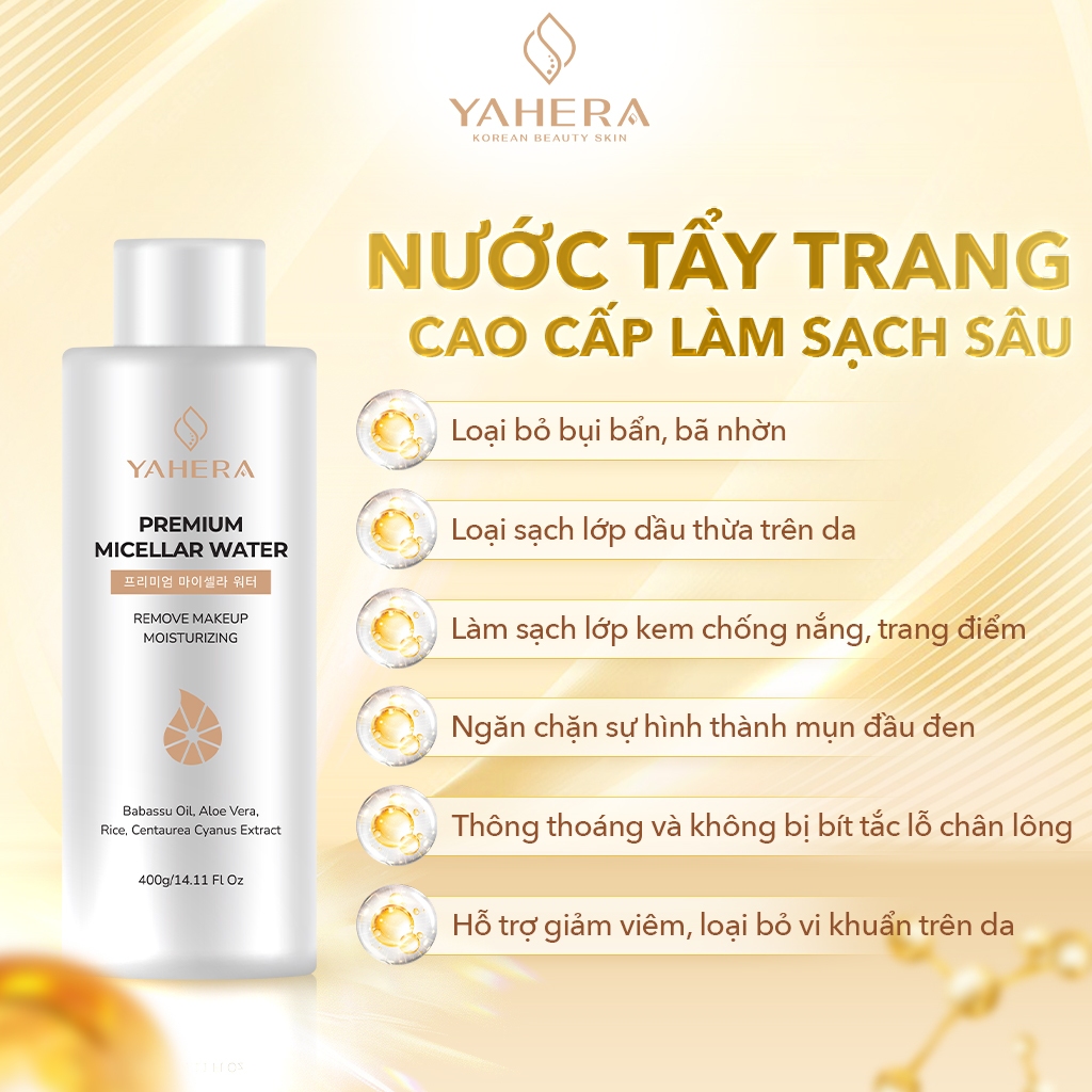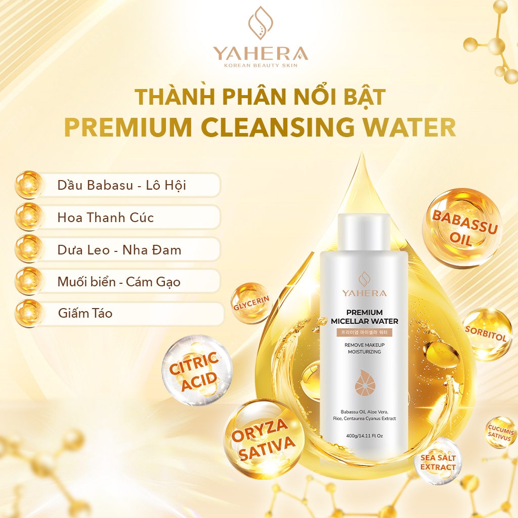 Nước tẩy trang cao cấp làm sạch sâu YAHERA Premium Cleansing Water làm sạch bụi mịn, bã nhờn 400ml