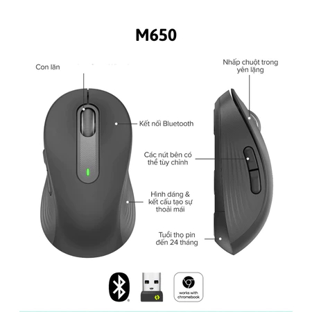 Chuột không dây Bluetooth Logitech M650 M650L dành cho máy tính xách tay văn phòng Công nghệ cảm biến AdvancedOptical
