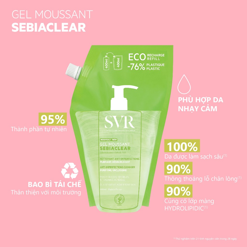 Gel rửa mặt không có xà phòng SVR SEBIACLEAR GEL MOUSSANT dạng túi 400ml