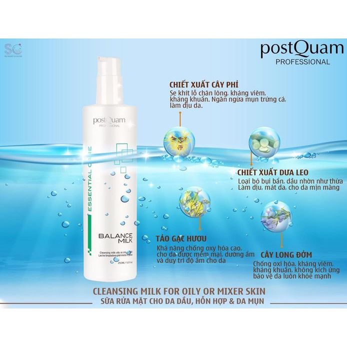 Sữa rửa mặt cho da dầu, hỗn hợp & da mụn PostQuam Balance Milk 250ml - 500ml