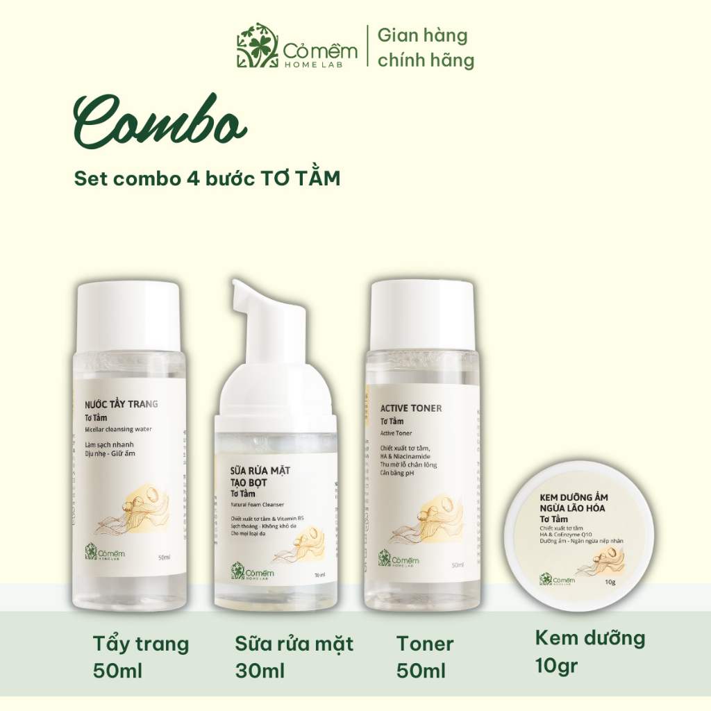 Set Mỹ Phẩm TravelKit Skincare Chăm Sóc Mọi Loại Da Tơ Tằm Rau Má Cỏ Mềm