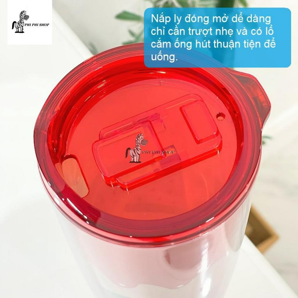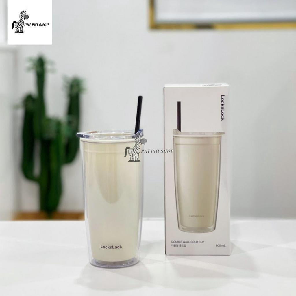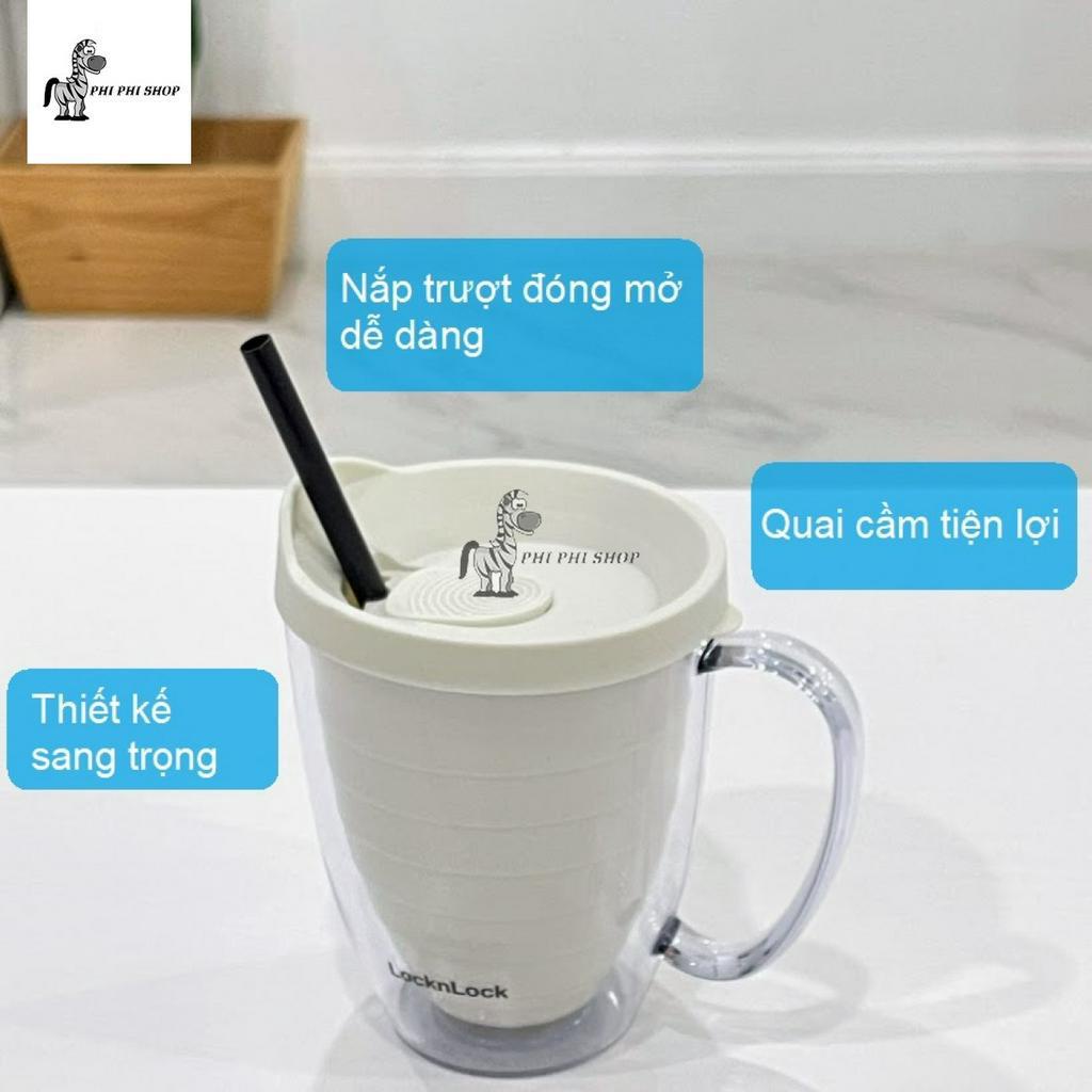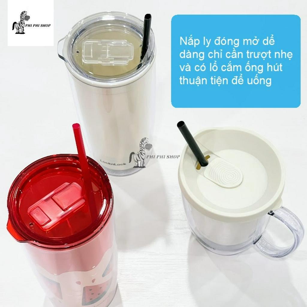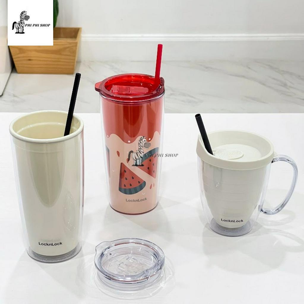 Ly nhựa 2 lớp LocknLock kèm ống hút dung tích 360ml nắp gạt đóng mở HAP523IVY 524RED HAP525IVY