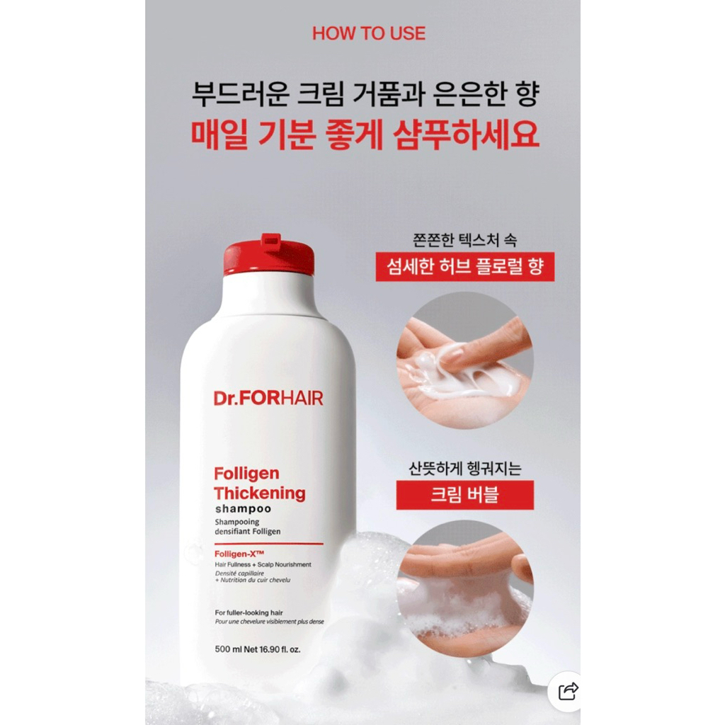 [Chính hãng] Dầu gội giảm rụng tóc Dr.FORHAIR Folligen Thickening/ 닥터포헤어 저자극 볼륨강화 탈모샴푸 폴리젠 씨크닝 샴푸 500ml