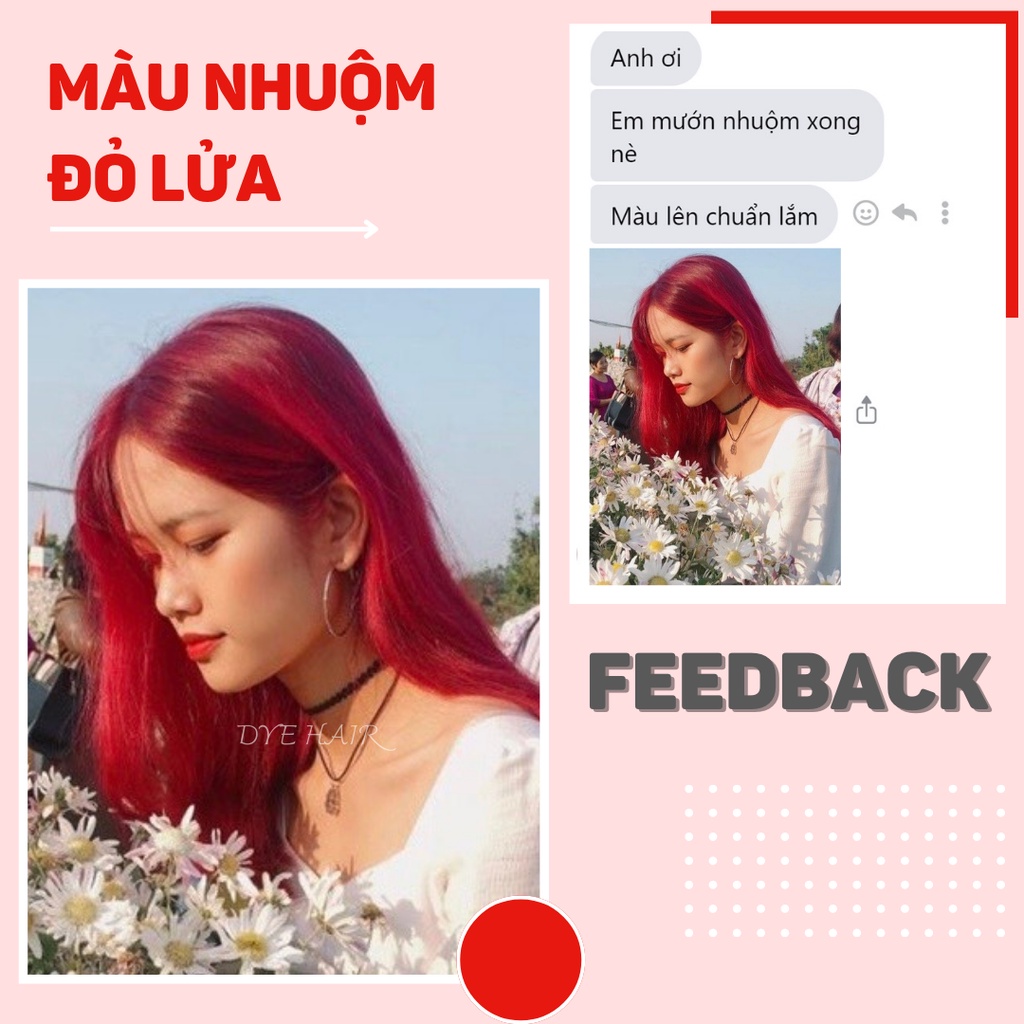 Thuốc nhuộm tóc, thuốc nhuộm tóc ĐỎ LỬA, DYE.HAIR, tặng kèm oxy trợ dưỡng và bao tay