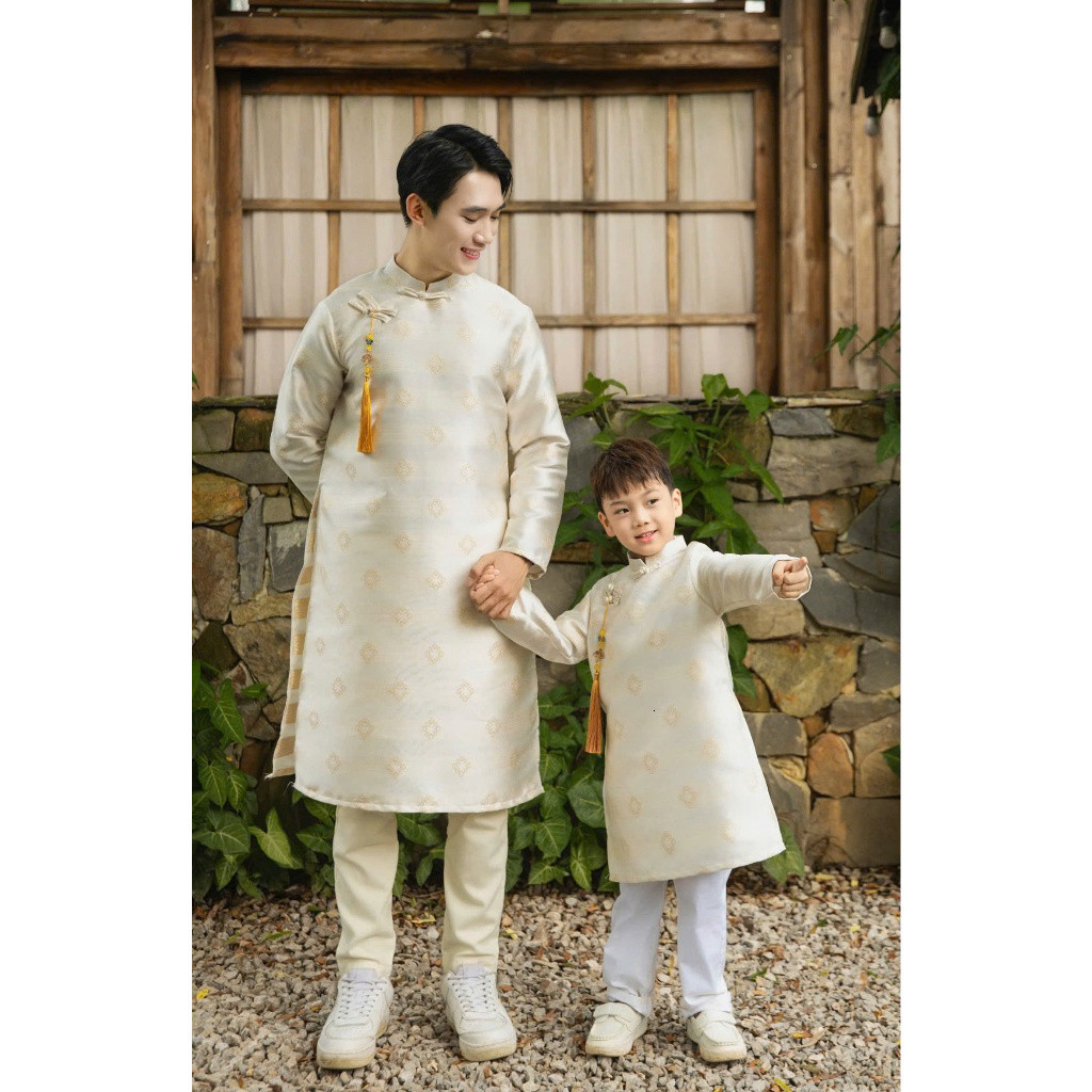 Áo dài tết bố và bé trai KIM THƯ, chất vải gấm cao cấp may 2 lớp, 3 màu sang chảnh tặng kèm charm- ÁO DÀI NAM PHƯƠNG