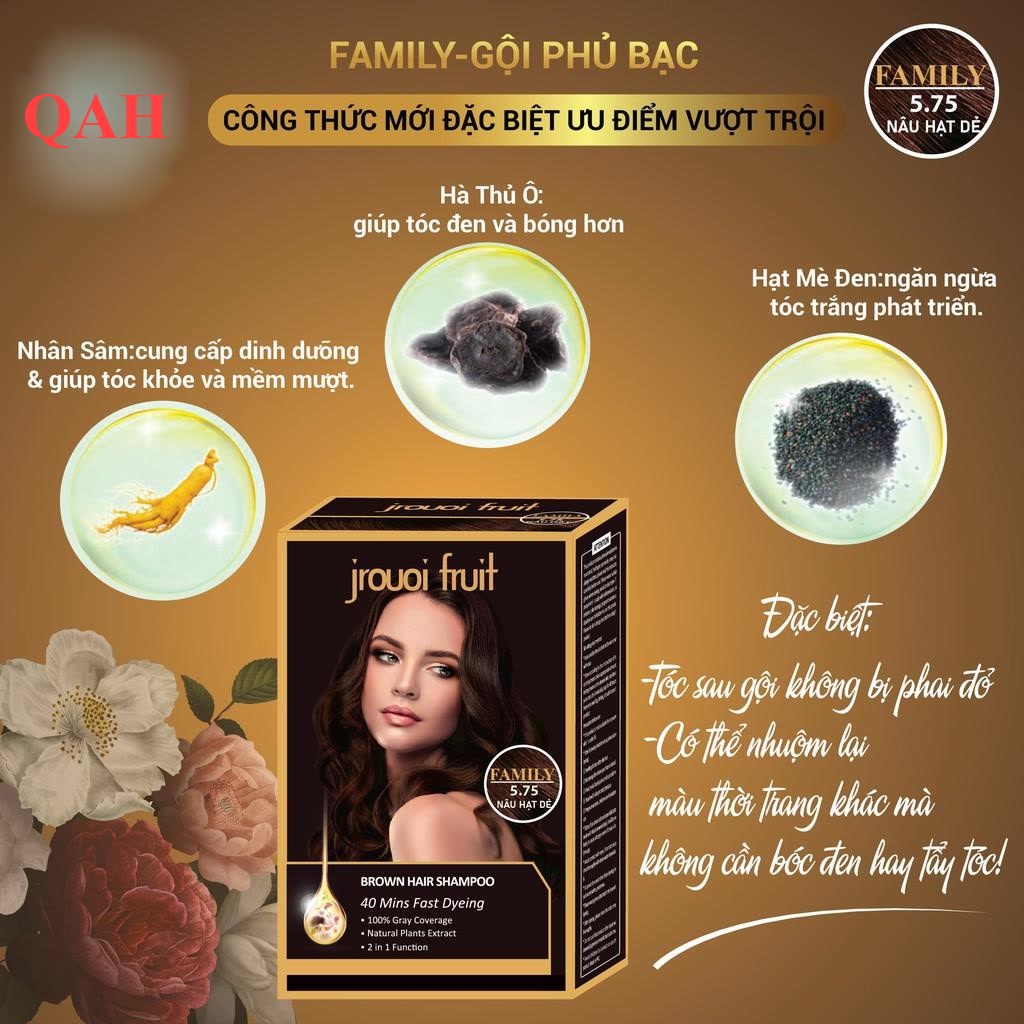 Dầu gội phủ bạc đen nâu thuốc nhuộm tóc đen thảo dược nhuộm tóc tại nhà FAMILY jrouoi fruit