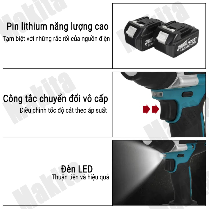 Thân Máy siết bulong makita 3 chế độ điều chỉnh tốc độ - momen xoắn cực đại 980Nm (1máy+1sạc+2pin+hộp dụng cụ+phụ kiện)