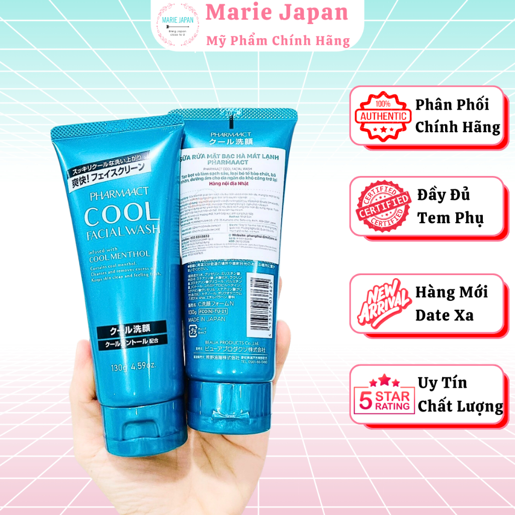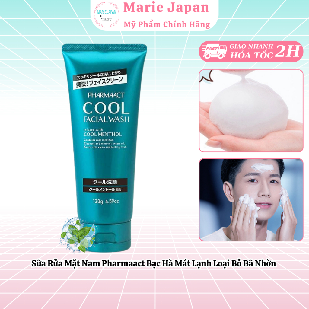 Sữa Rửa Mặt Nam Pharmaact Cool Facial Foam Bạc Hà Mát Lạnh Loại Bỏ Bã Nhờn Nhật Bản 130g