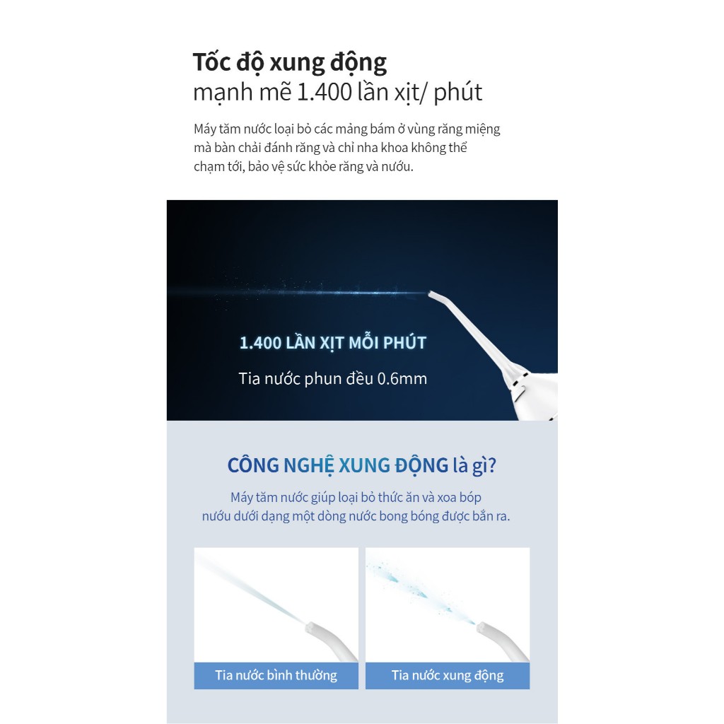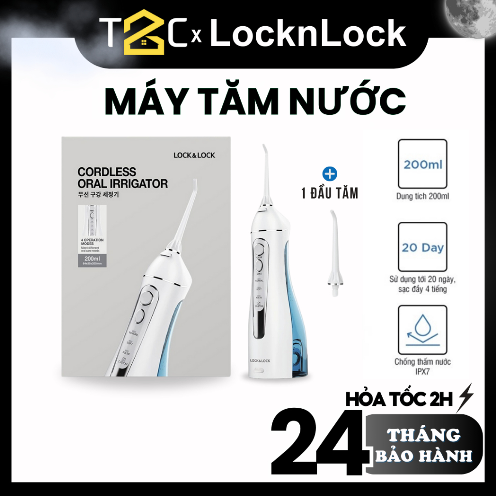 Tăm Nước LocknLock Cầm Tay Không Dây Chính Hãng Cao Cấp 4 Chế Độ Oral Irrigator 200ML ENR156BLU T2C