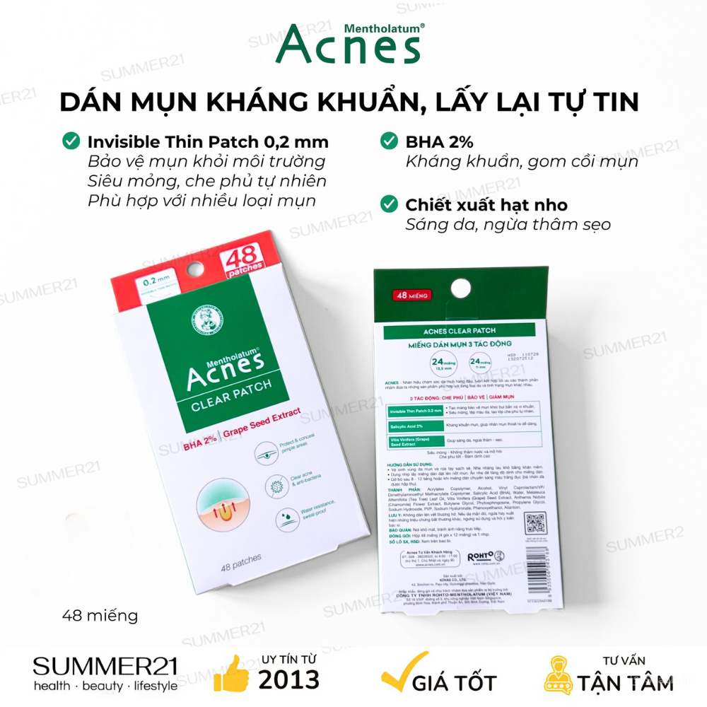 Miếng dán mụn 48 miếng ACNES MENTHOLATUM CLEAR PATCH