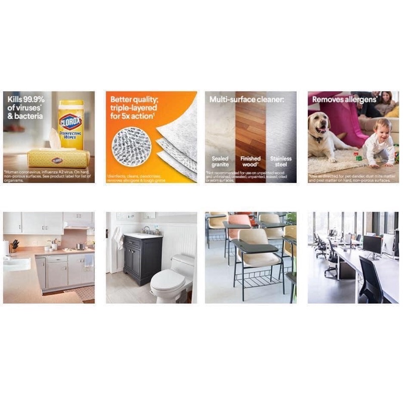 (U.S.A) KHĂN LAU ĐA NĂNG DIỆT KHUẨN CLOROX 85 TỜ