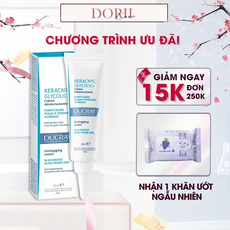 Kem dưỡng giảm mụn đầu đen, giúp kiểm soát bóng nhờn, làm mịn da Ducray KERACNYL Glycolic+ Cream 30ml