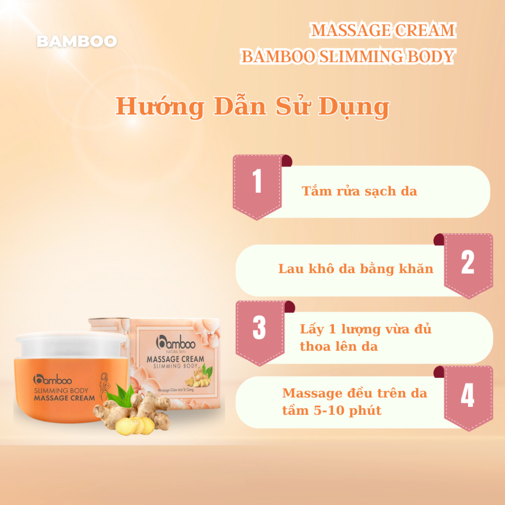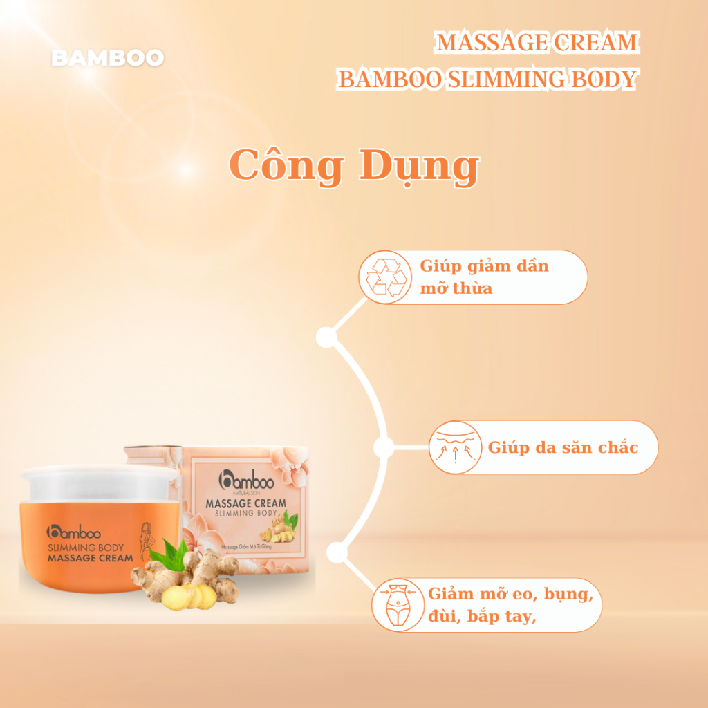 Kem tan mỡ gừng BAMBOO giảm mỡ bụng, săn chắc da, đốt mỡ hiệu quả, thẩm thấu nhanh, không bết rít