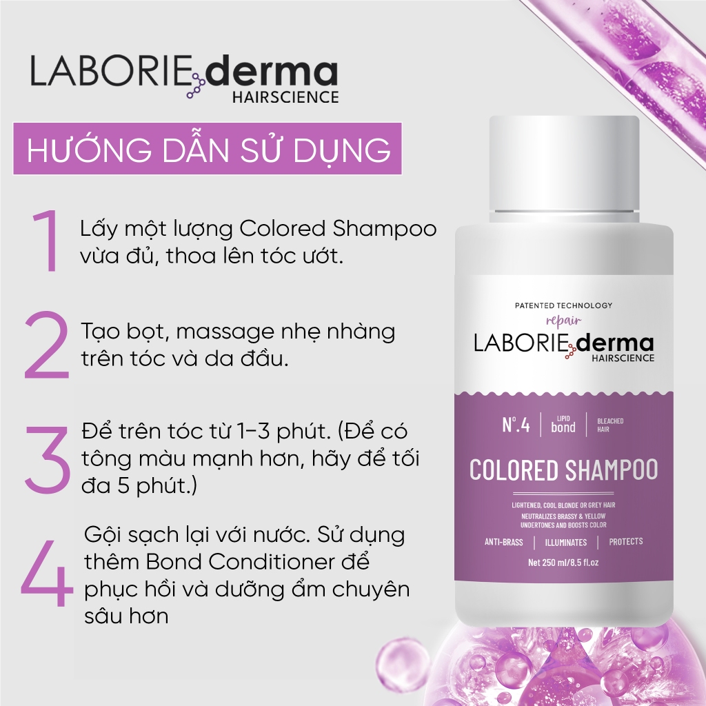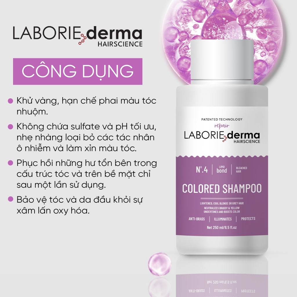 Colored Shampoo - Dầu gội cho tóc nhuộm Laborie chống lại các nguyên nhân gây phai màu tóc nhuộm