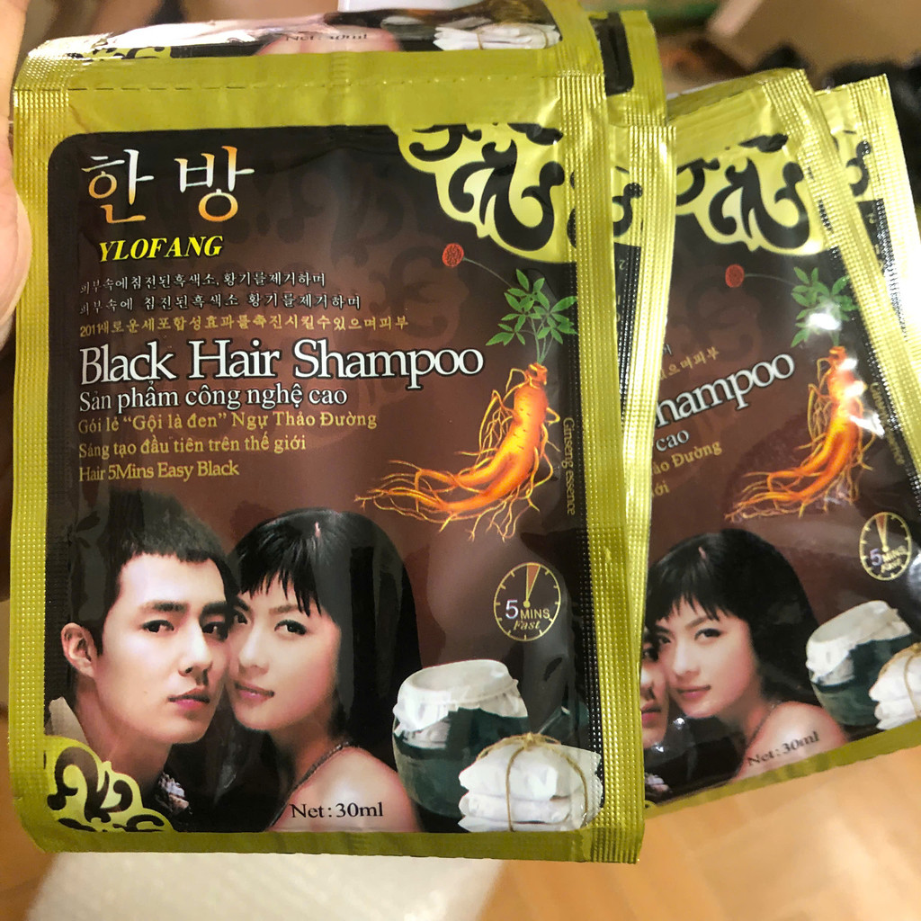 Dầu gội đen tóc 10 GÓI - Phủ bạc tại nhà đen tóc Gội là đen tigi, nhân sâm Hàn Quốc Shop Lan Chi