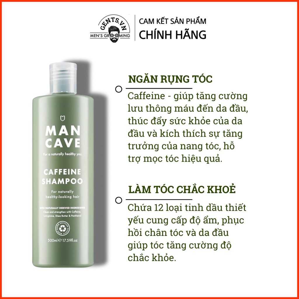 Cặp dầu gội, xả nam phục hồi, ngăn rụng tóc và giảm gàu ManCave Caffeine (200/500ml) cải thiện độ săn chắc của tóc