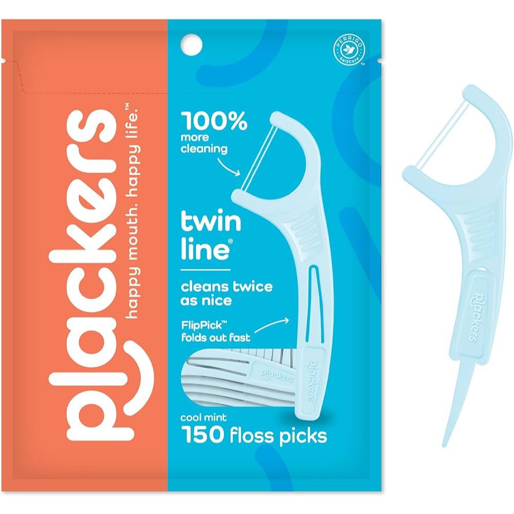 TÚI 150-160 TĂM 2 SỢI CHỈ NHA KHOA VỊ BẠC HÀ Plackers Twin-Line Dental Flossers, Advanced Whitening, Dual Action Flossin
