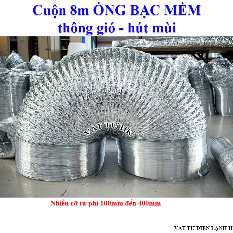 Ống bạc sun co giãn cuộn 8 mét thông gió hút mùi, ống bạc thông gió hút mùi Xịn