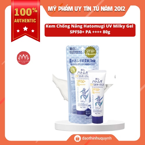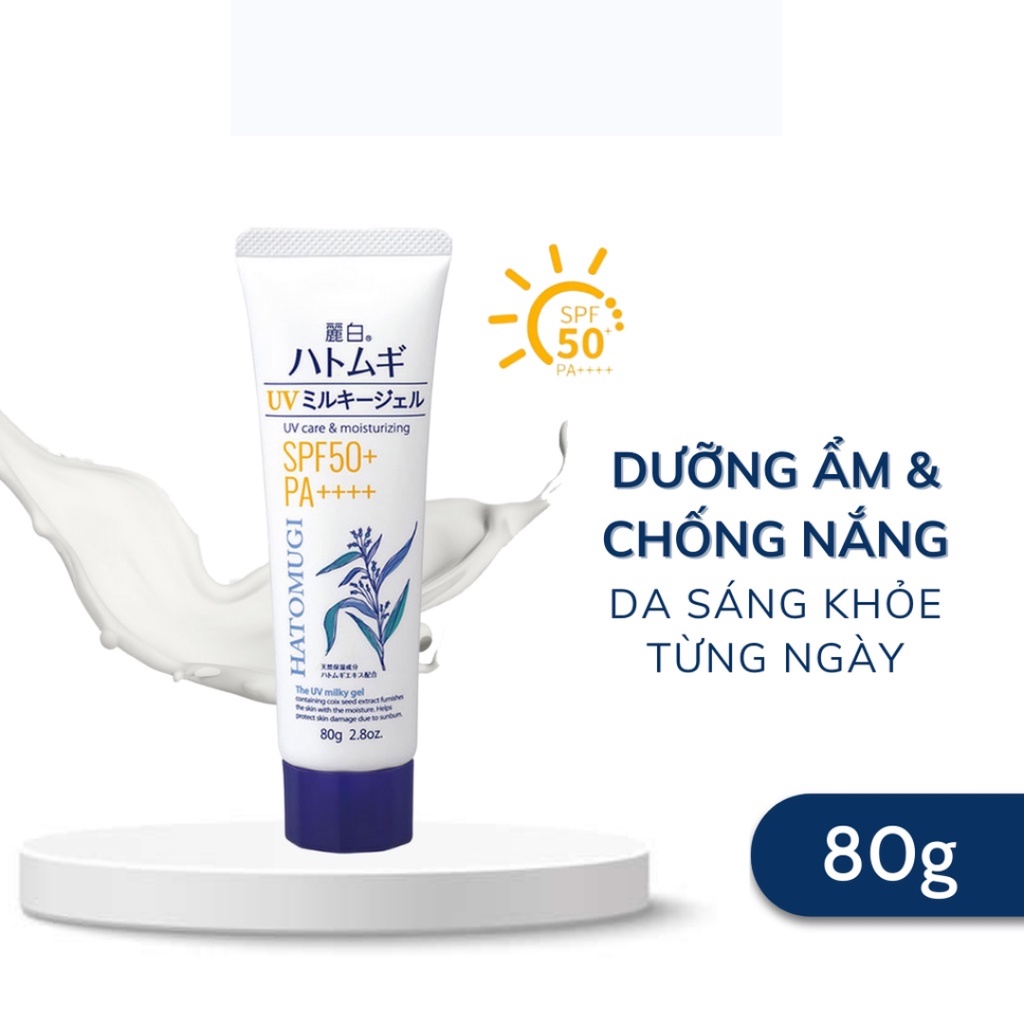 Kem chống nắng Hatomugi UV Milky Gel SPF50+ PA++++ cấp ẩm làm dịu sáng da, bảo vệ da khỏi tia UV 80g