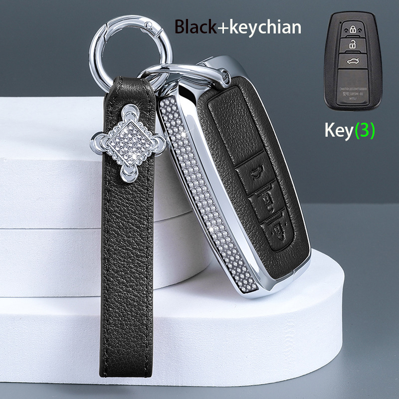 Vỏ Bọc Chìa Khóa Điều Khiển Từ Xa Bằng Hợp Kim Kẽm Phối Da Cho Toyota 2018-2022 Camry RAV4 Highlander Avalon C-HR Prius Corolla Cross GT86