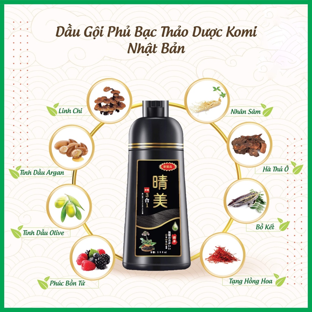 Dầu gội Phủ Bạc thảo dược, nhuộm tóc tự nhiên, Chai 500ml, Komi Nhật Bản [Chính Hãng]