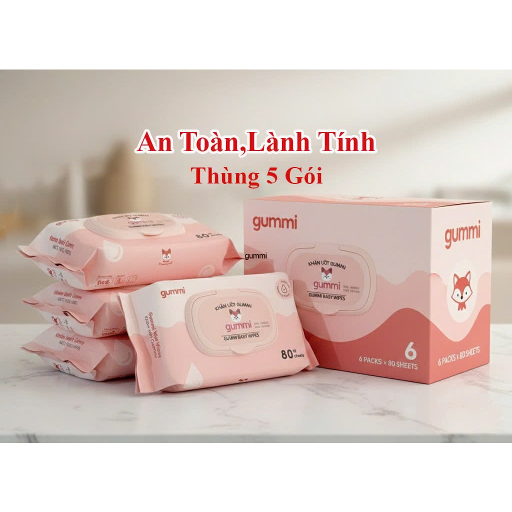 Thùng 10 gói khăn ướt Gummi 80 Tờ không cồn, không parabens cao cấp dành cho em bé
