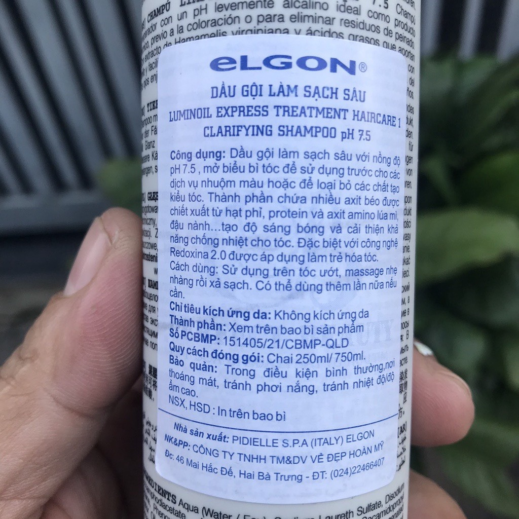Dầu gội làm sạch sâu với nồng độ pH 7.5 Elgon Luminoil 1 – Clarifying Shampoo delofil 250ml _NEW