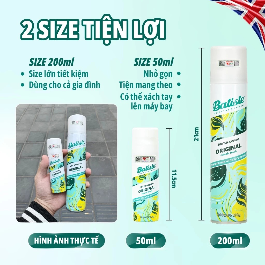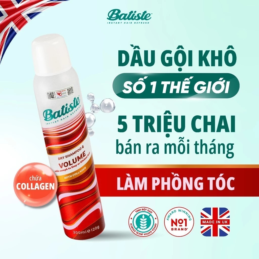 Dầu Gội Khô Batiste Dry Shampoo Hết Ngứa, Hết Bết Dính Tóc Bồng Bềnh Tức Thì 200ml