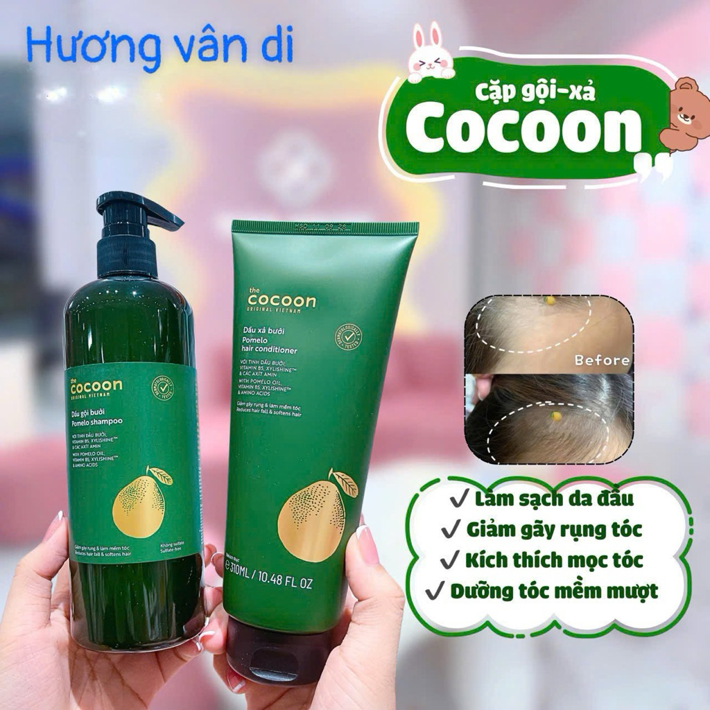 Bộ Dầu gội xả bưởi Cocoon giúp giảm gãy rụng và làm mềm tóc Gội 500ml + Xả 310ml
