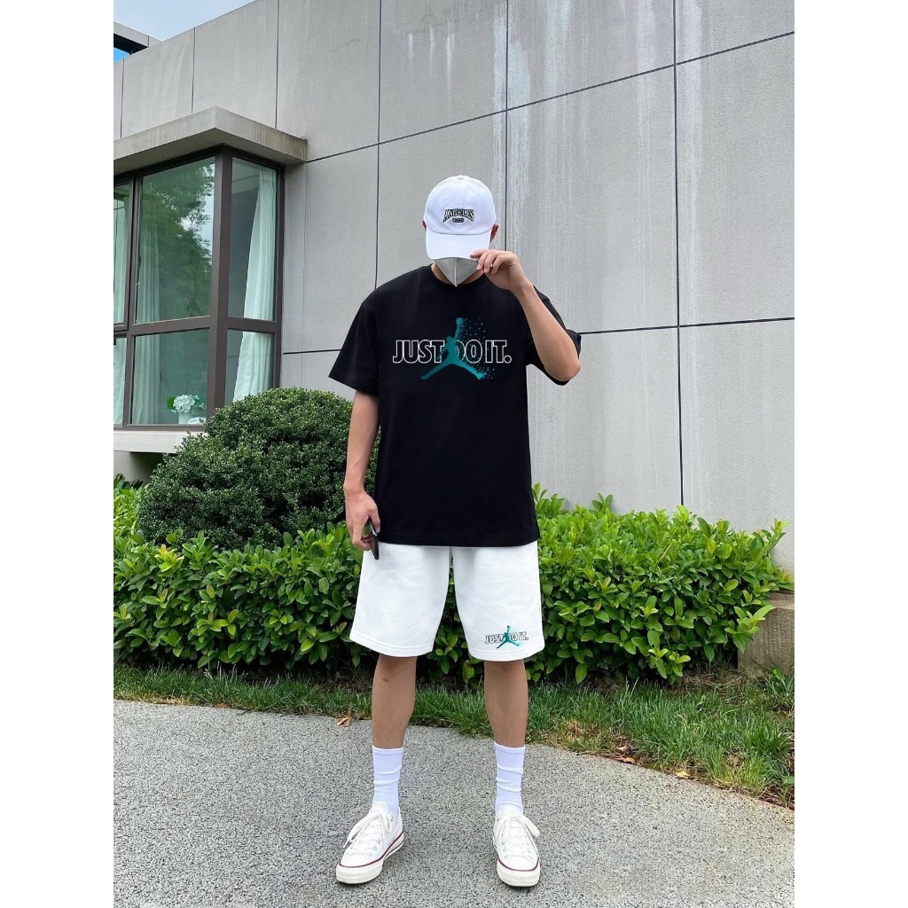 Bồ đồ thể thao Nam Just Do It phối họa tiết người màu xanh tan biến, áo phông vải cotton co giãn