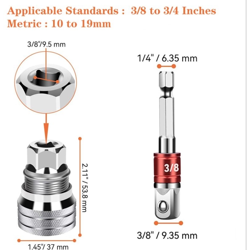 Cờ Lê Lục Giác Đa Năng Điều Chỉnh 10-19 mm Kèm Đầu Nối Máy Khoan