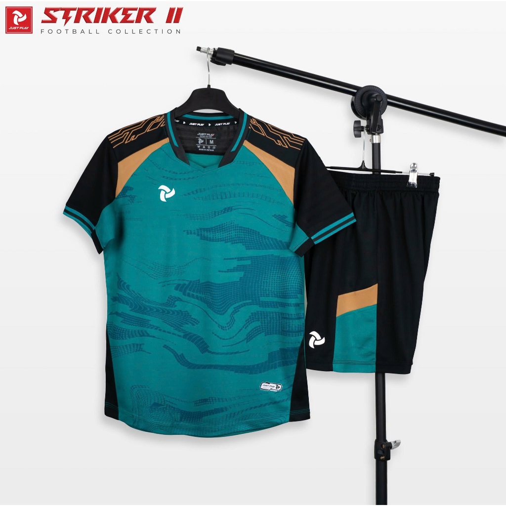 Quần Áo Bóng Đá Trẻ Em Just Play Striker II xanh lông công người lớn và trẻ em vải mè cao cấp