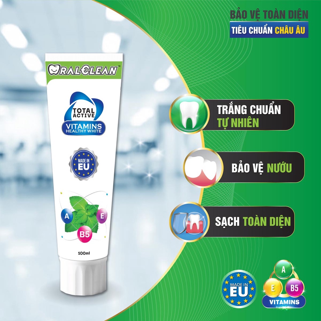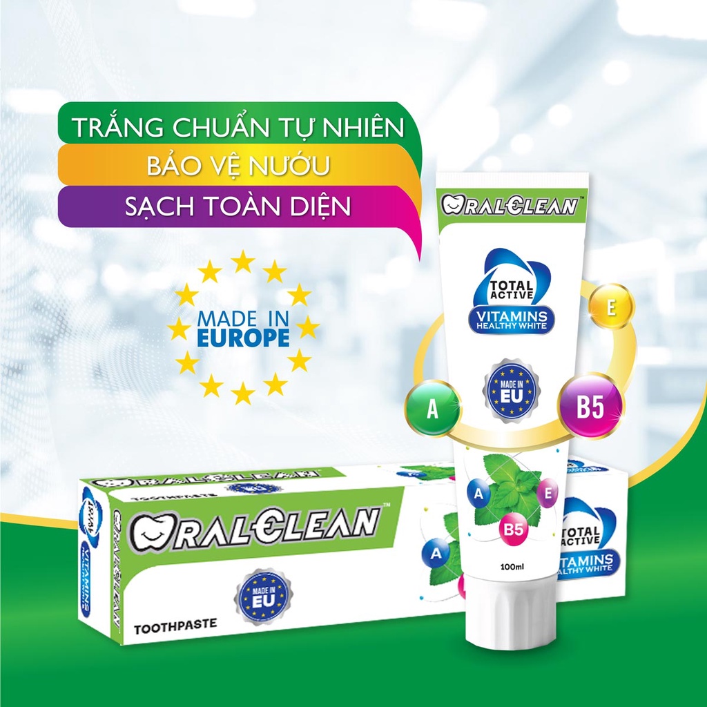 Kem Đánh Răng Trắng Răng OralClean Total Active Vitamin Healthy White 100ml