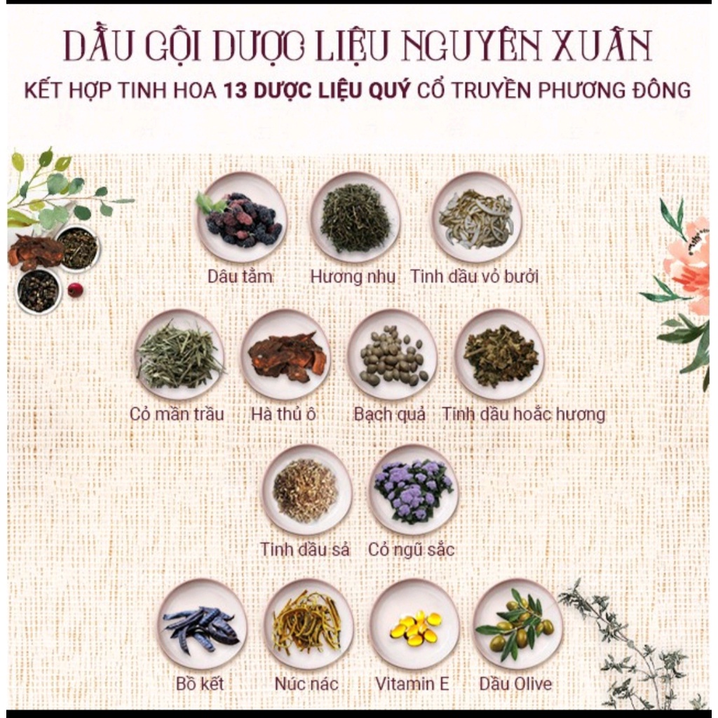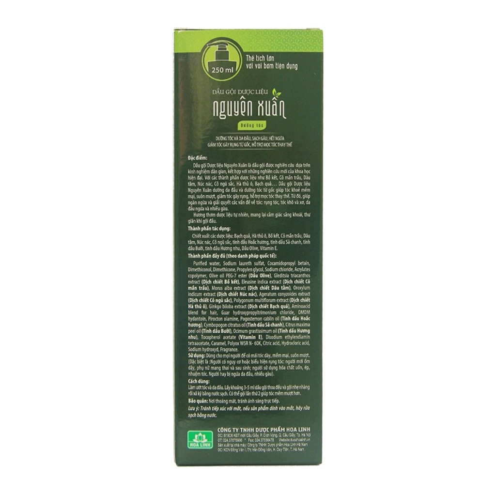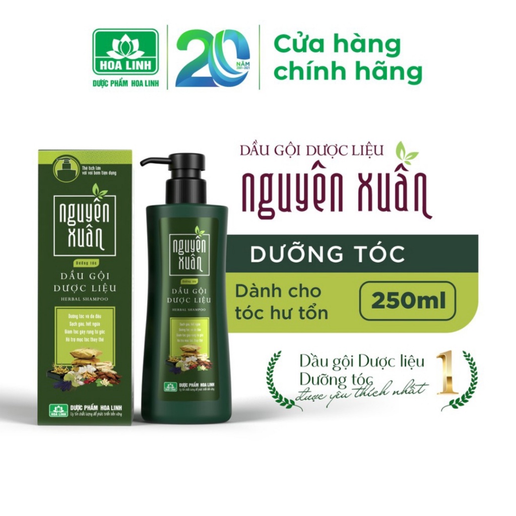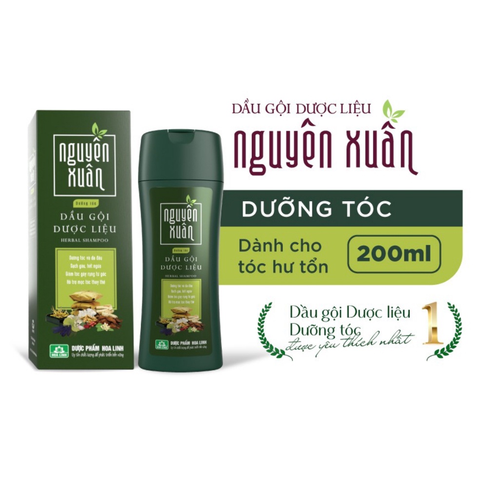 Dầu gội Dược liệu Nguyên Xuân xanh lá dưỡng da đầu và dưỡng tóc từ gốc, phục hồi tóc hư tổn, giảm tóc gãy rụng