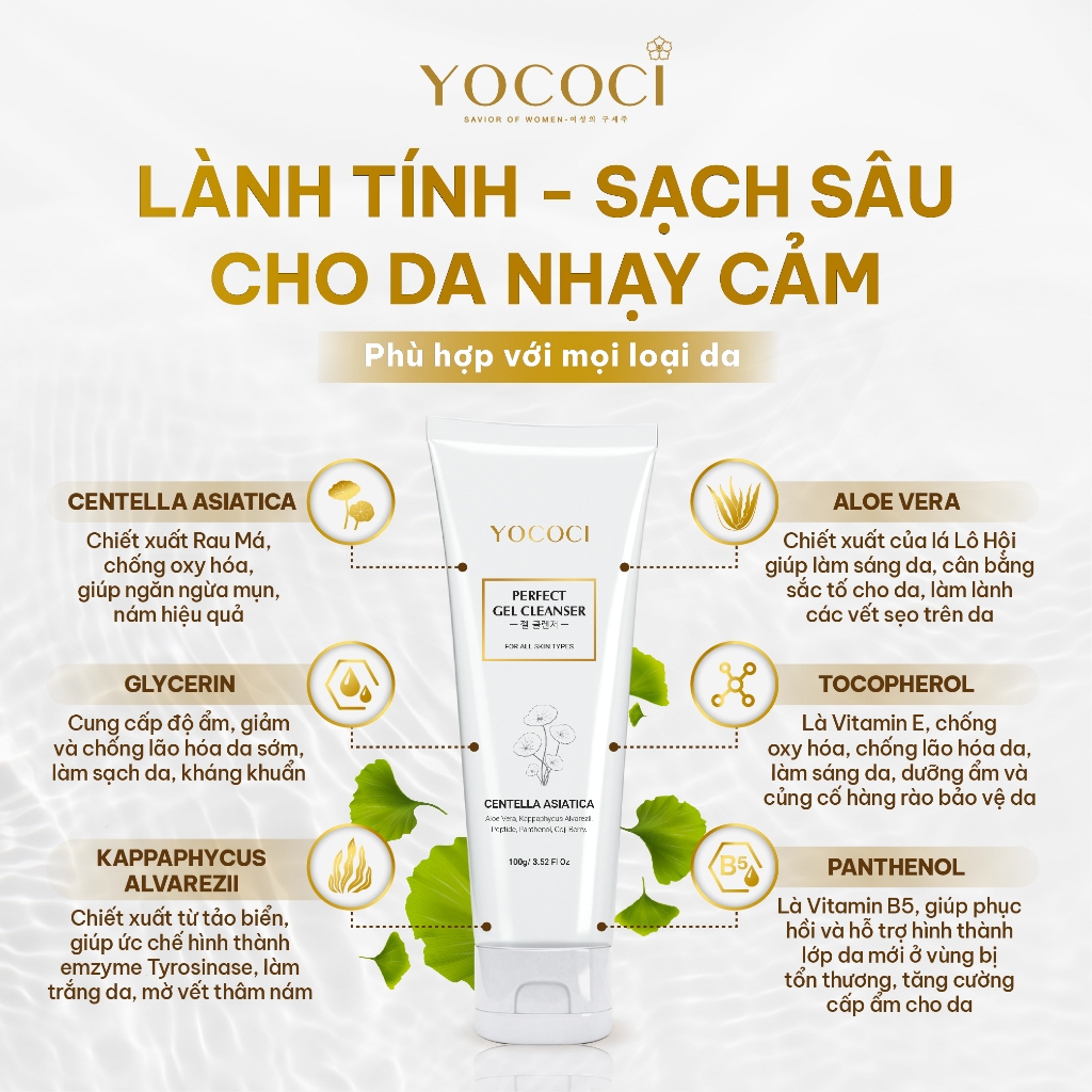Sữa Rửa Mặt Dạng Gel Cao Cấp Yococi Perfect Gel Cleanser 100g – Làm Sạch Bụi Bẩn, Ngừa Mụn, Sáng Da