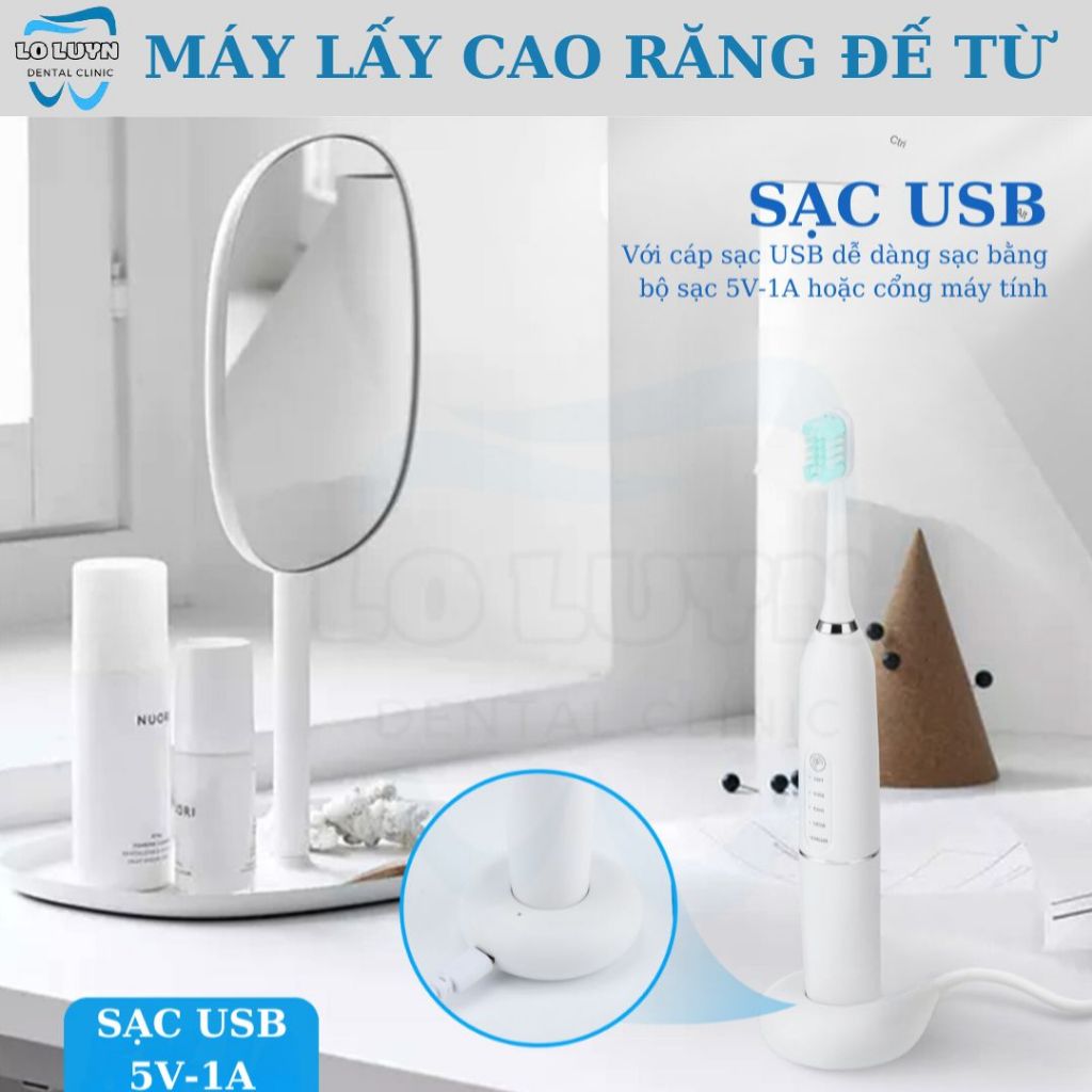 Máy lấy cao răng tại nhà M07, dụng cụ lấy vôi răng kiêm bàn chải điện sạc đế từ tính Kháng nước IPX7 Tặng kèm kệ đỡ