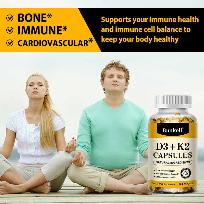 Viên nang Vitamin D3 5000iu và Vitamin K2 (Mk7) 200mcg hỗ trợ sức khỏe xương, răng, cơ và miễn dịch