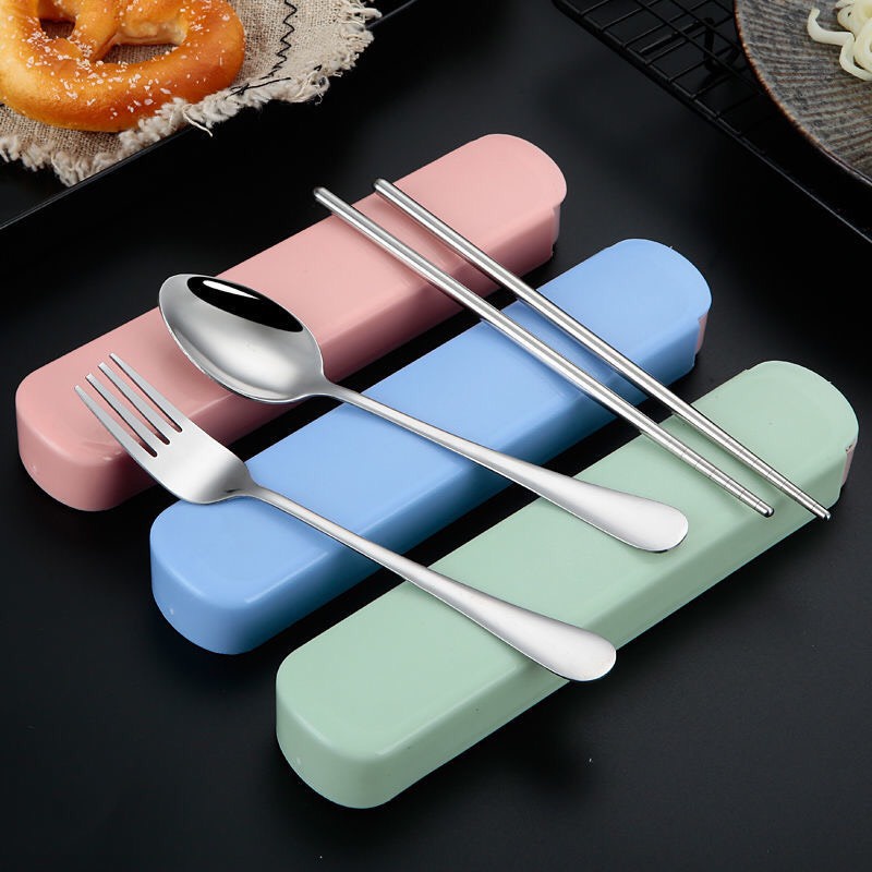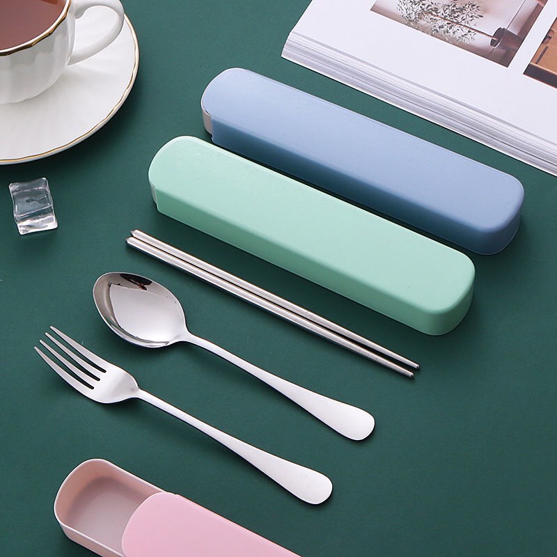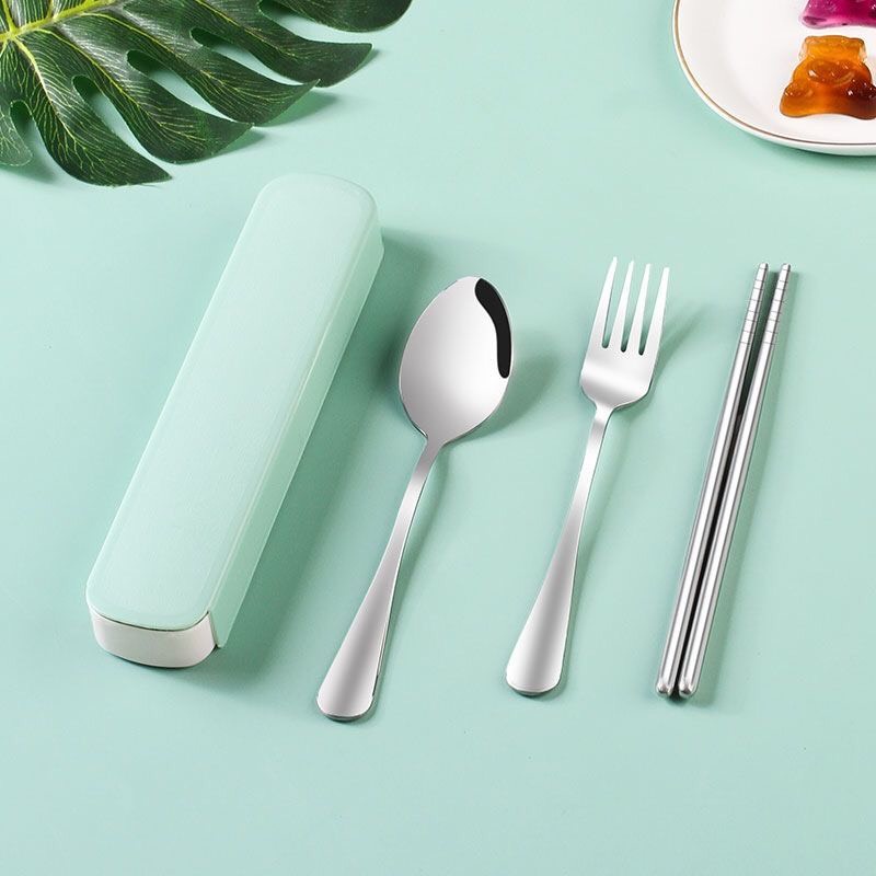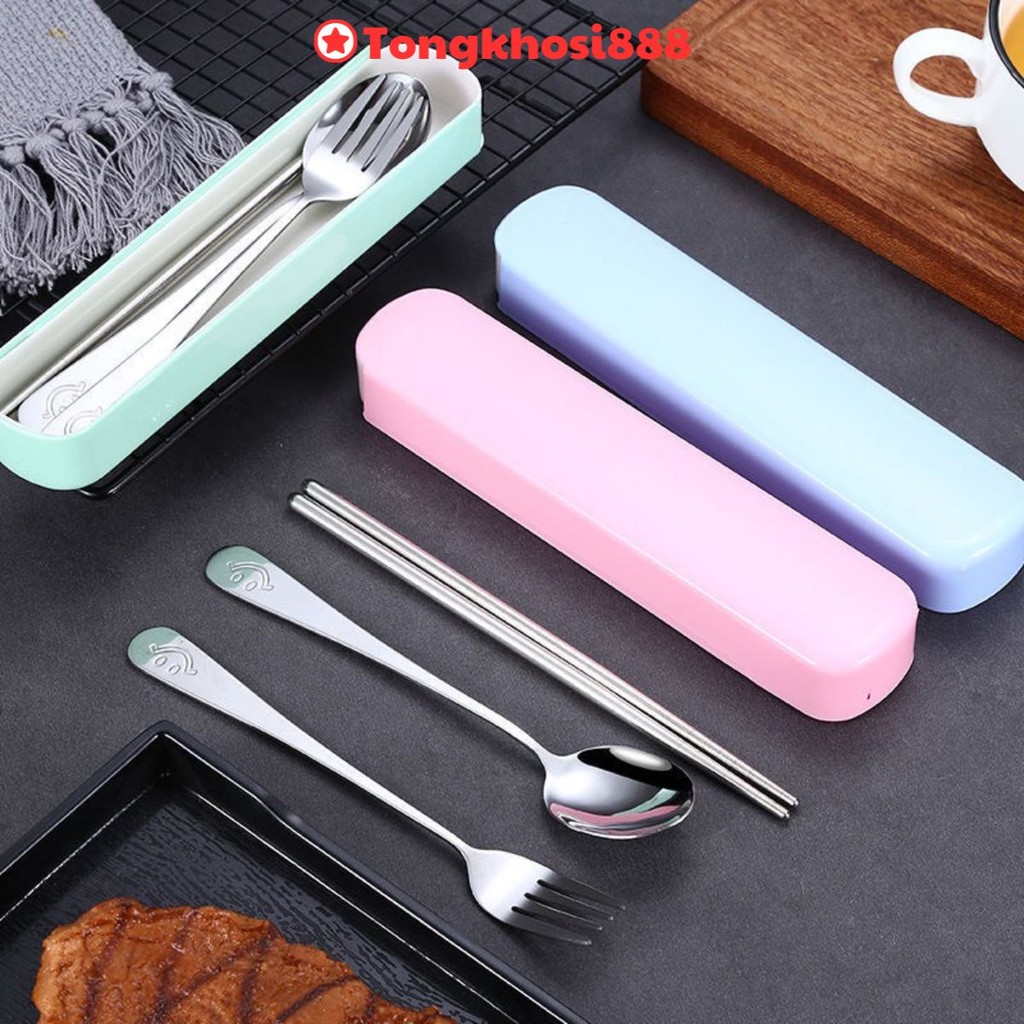 PVN60975 Bộ Thìa Đũa Dĩa INOX Cá Nhân Ăn Trưa Văn Phòng Tặng Hộp Đựng Nhựa