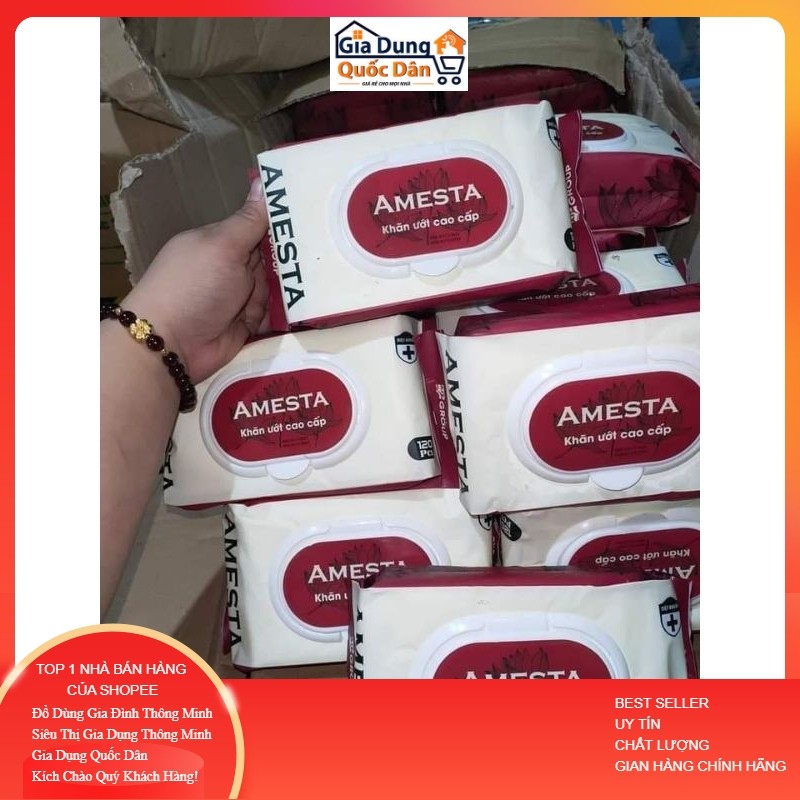 Gói 120 tờ khăn giấy ướt Amesta 3 lớp không cồn an toàn cho da không chưa cồn
