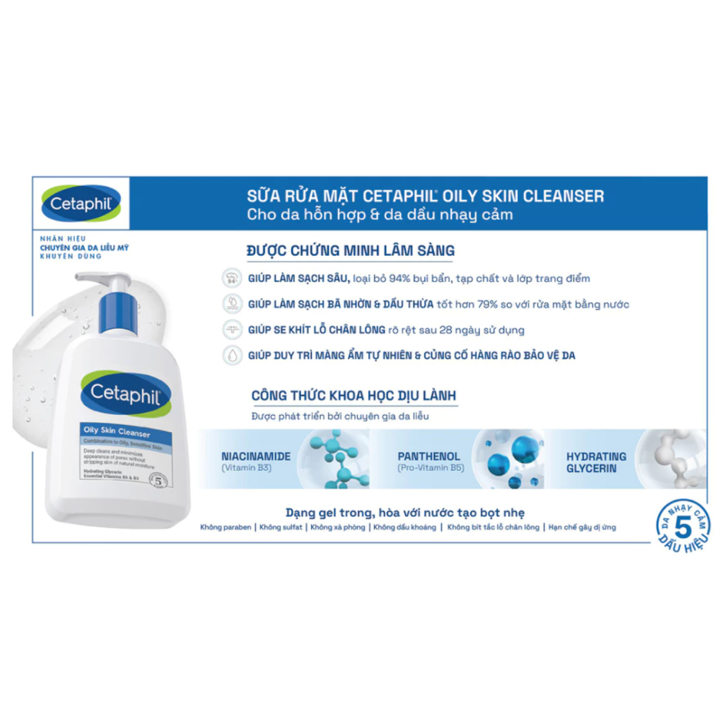 Sữa Rửa Mặt Dịu Lành Cho Da Hỗn Hợp và Da Dầu Nhạy Cảm CETAPHIL Oily Skin Cleanser 125ml / 473ml
