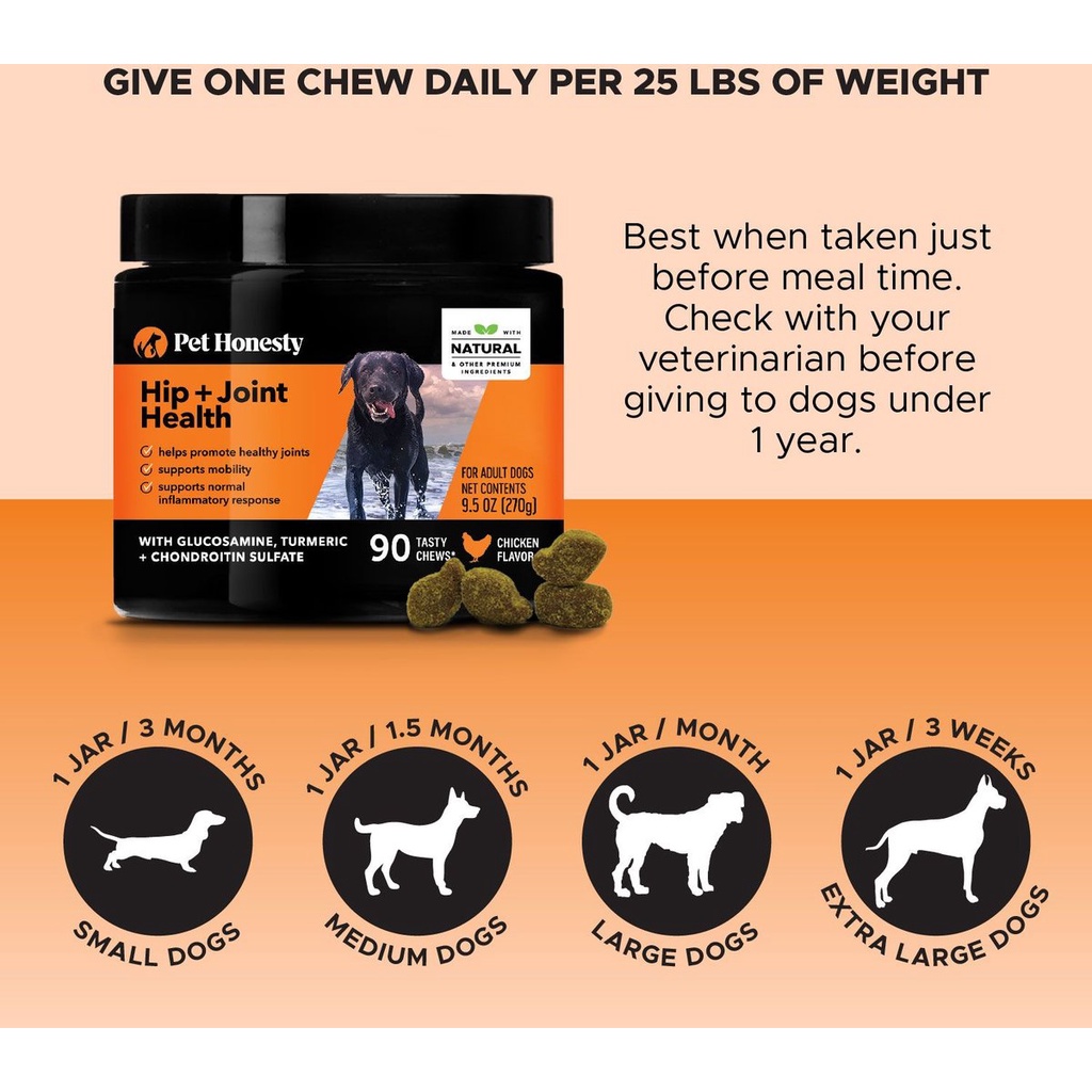 Cải thiện sụn, khớp và hông cho chó -Hip & Joint - PetHonesty - Viên nhai mềm (hủ 90 viên)