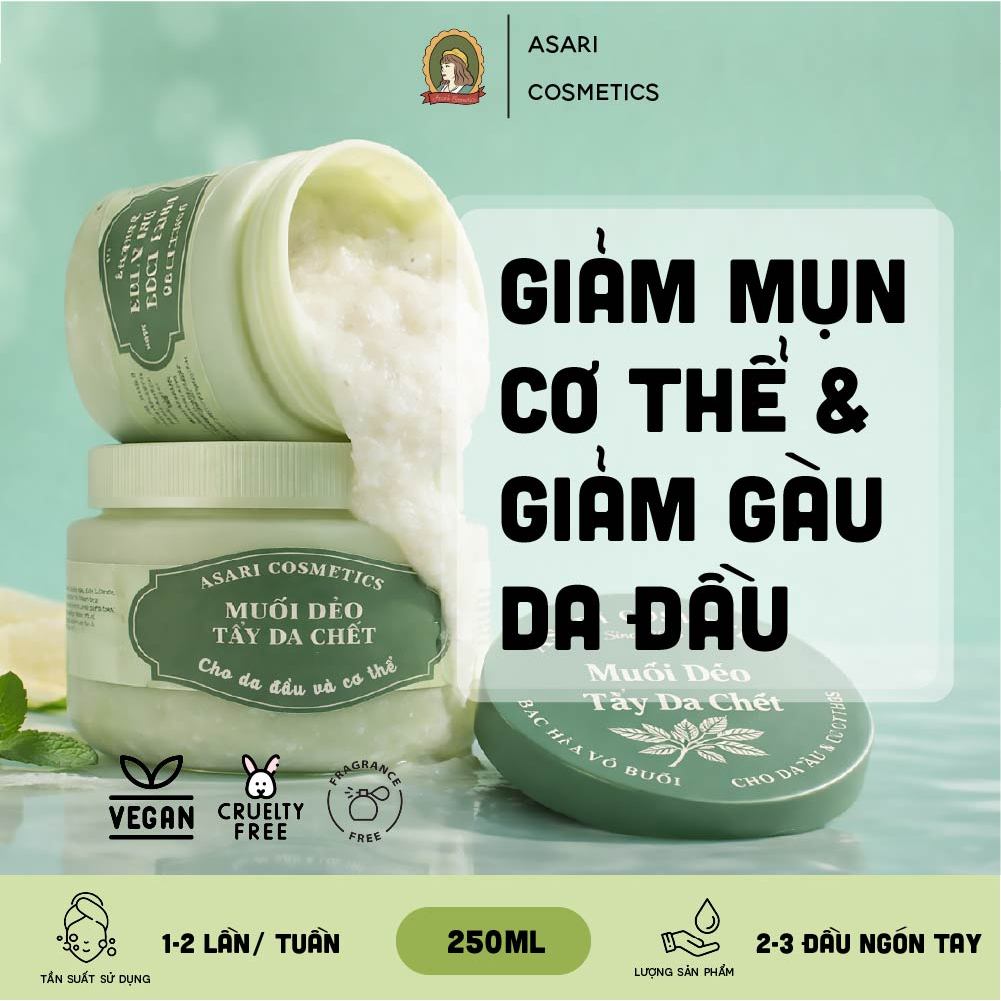 [250ml] Muối dẻo tẩy da chết cho da đầu và cơ thể giúp giảm gàu, mịn da handmade Asari Cosmetics