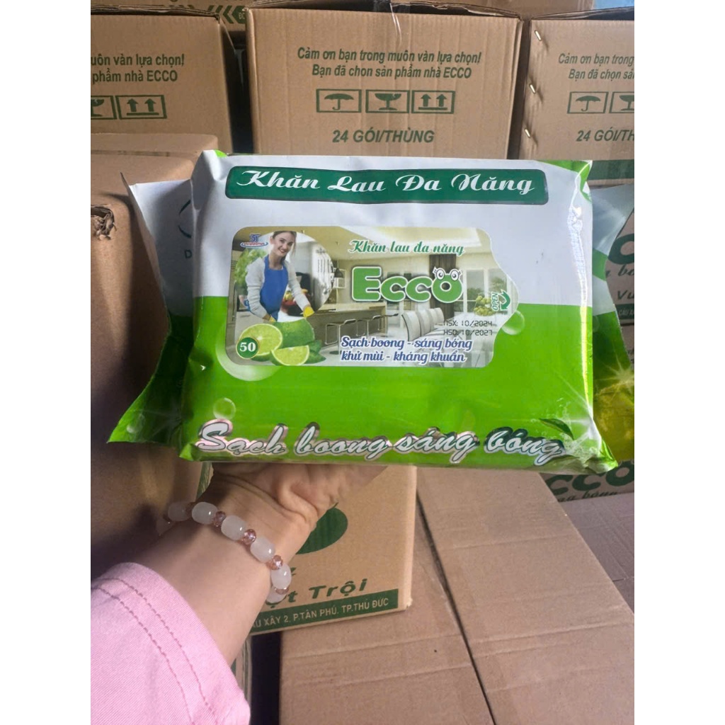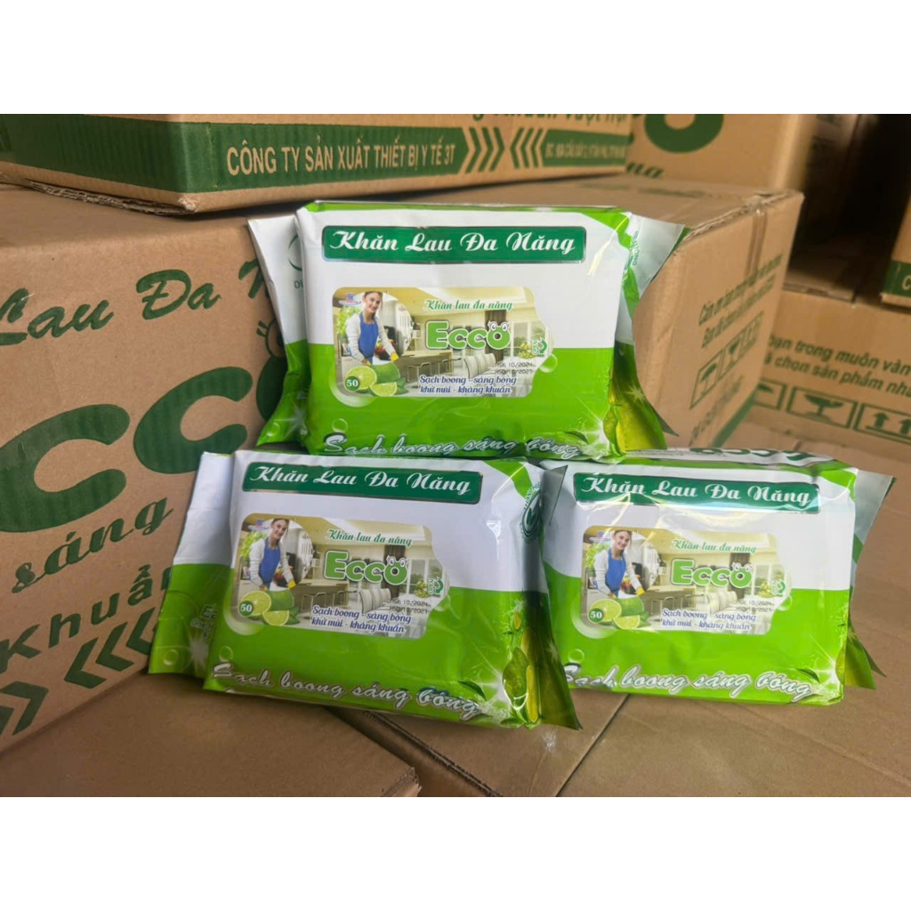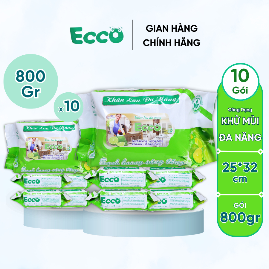 Thùng 5&10 Gói Khăn Ướt Lau Bếp Đa Năng Gói 800Gr ECCO Dùng 1 Lần