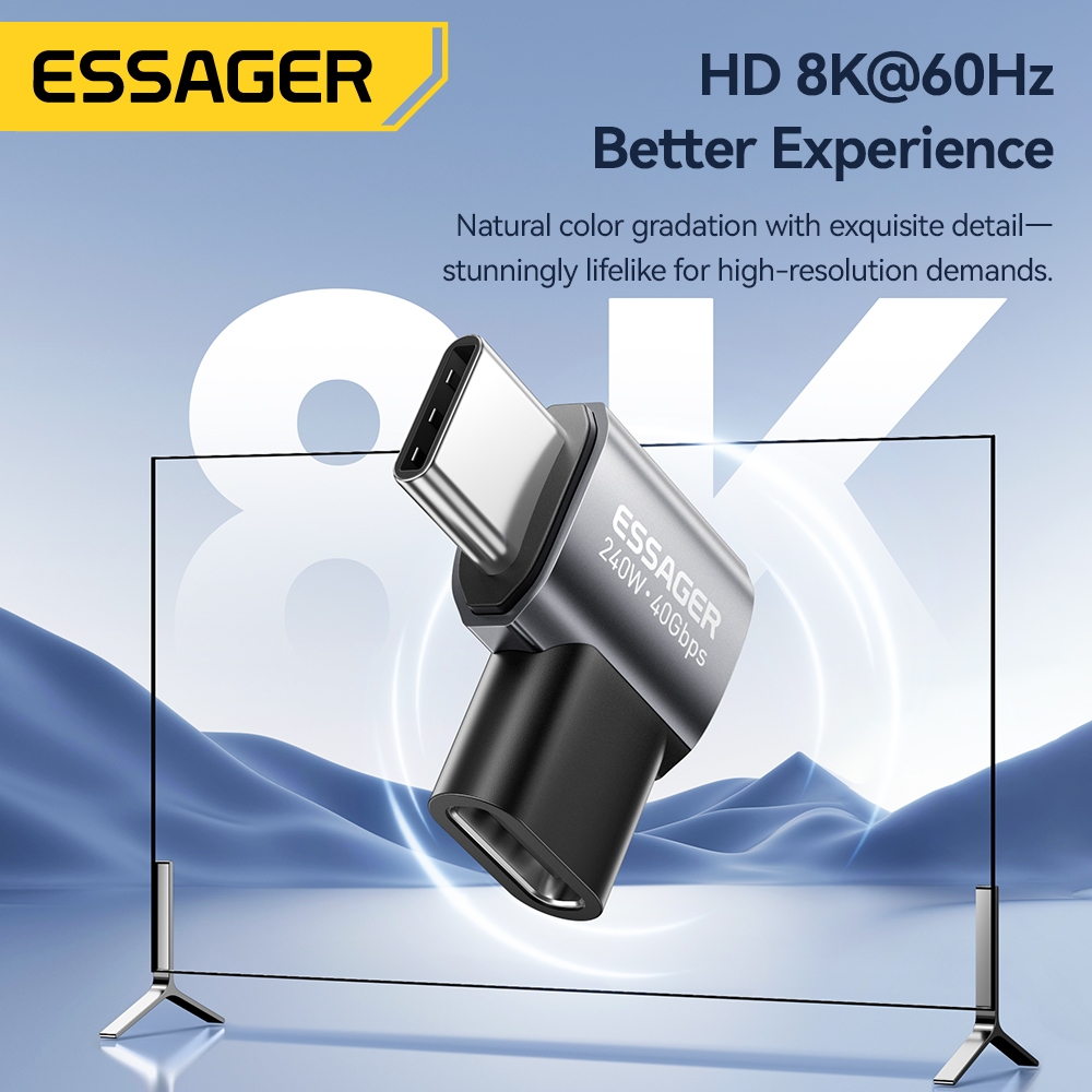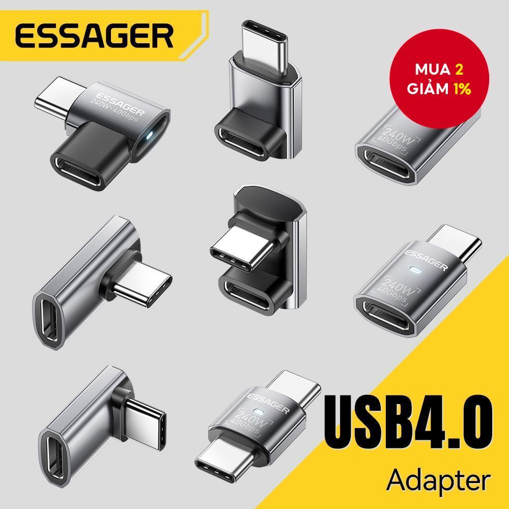 Bộ chuyển đổi OTG Essager USB4.0 40Gbps OTG, sạc nhanh 240W, đầu chuyển đổi dữ liệu USB Type C góc 90 độ cho điện thoại, MacBook, Laptop, hỗ trợ 8K60Hz.
