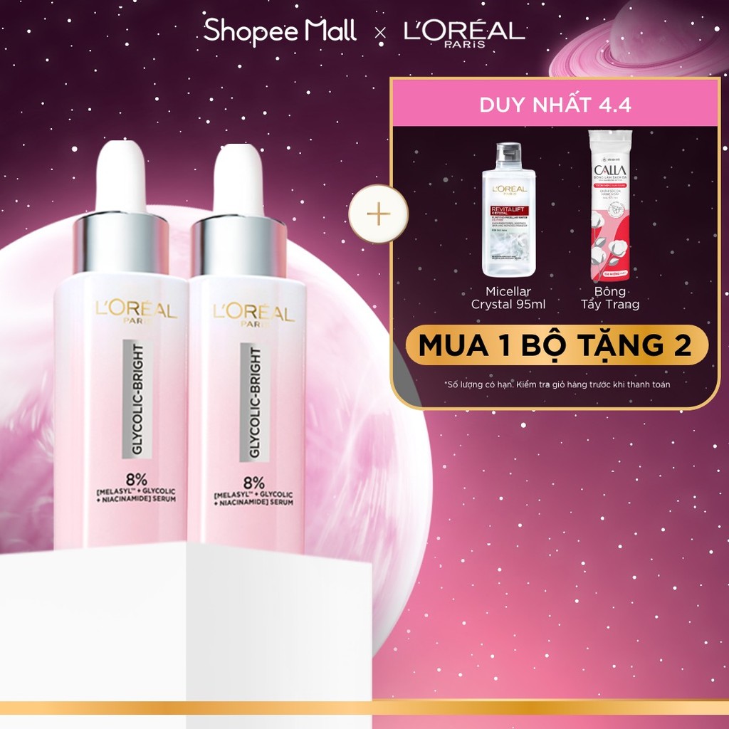 Bộ 2 Serum Glycolic Melasyl 8% [Melasyl+Glycolic+Niacinamide] dưỡng sáng da, mờ thâm mụn & nám Loreal Paris (30ml x2)