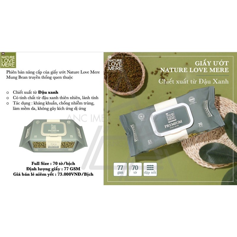 KHĂN GIẤY ƯỚT CAO CẤP NATURE LOVE MERE (BỊCH LỚN 70 TỜ)