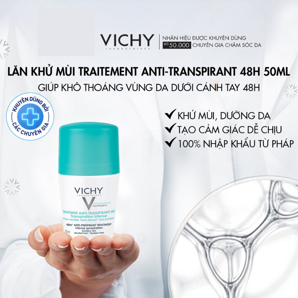 [MEGA 4.4|14H-16H] Lăn Khử Mùi Vichy Khô Thoáng Vùng Da Dưới Cánh Tay 48H - 72H 50ml Hasaki Chính Hãng