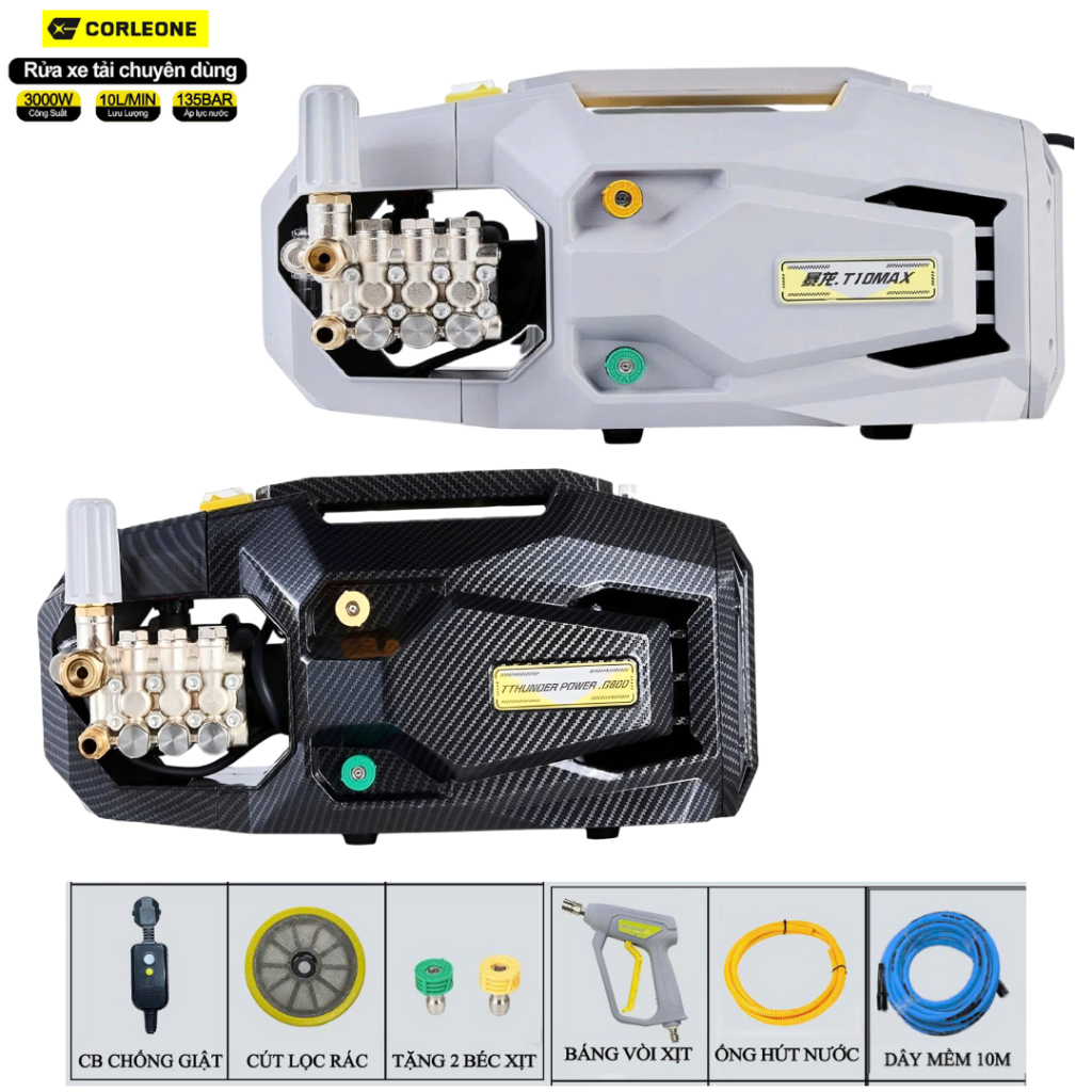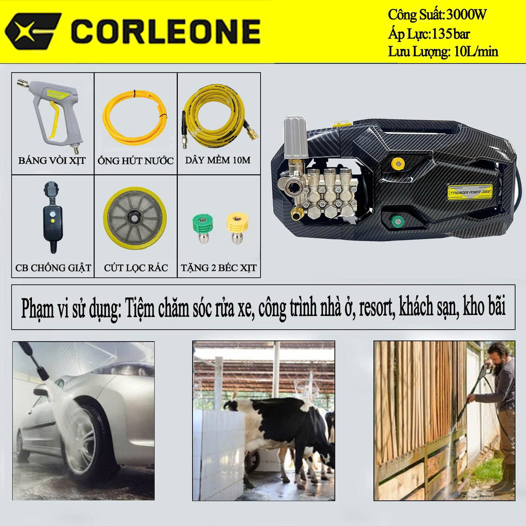 Máy Rửa Xe Chuyên Nghiệp Corleone G800 3000W 135 Bar 10L/Phút Lõi Đồng Ti Sứ Cao Cấp